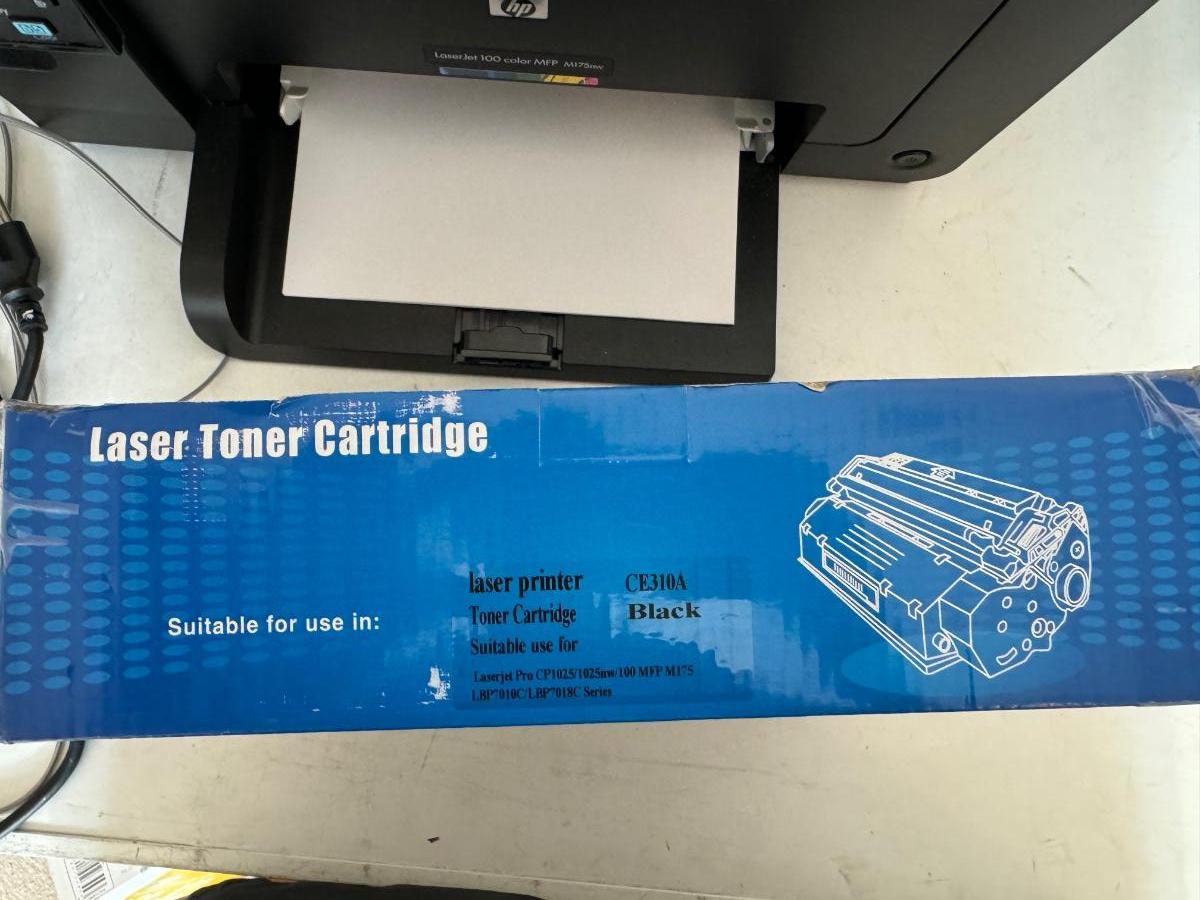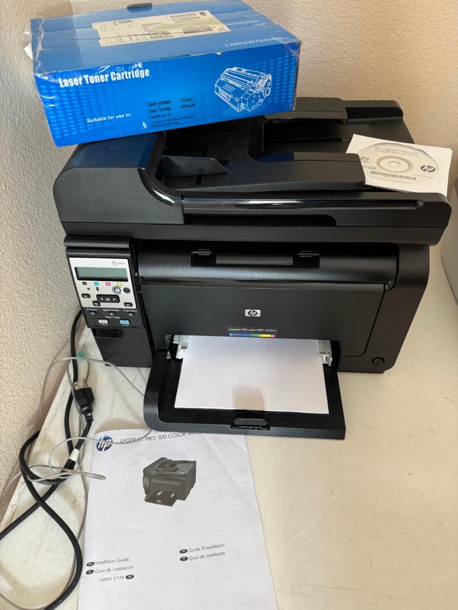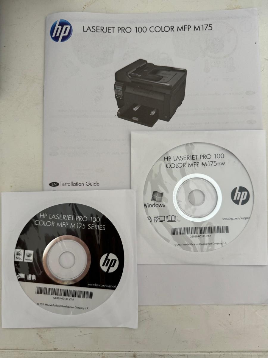 Includes hp Laserjet Pro 100 Color MFP M175 printer, Mac & Windows disc, installation guide and 3 black toner cartridges