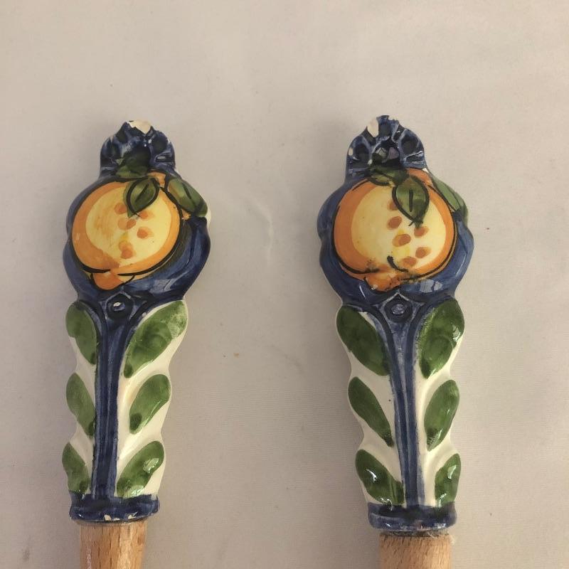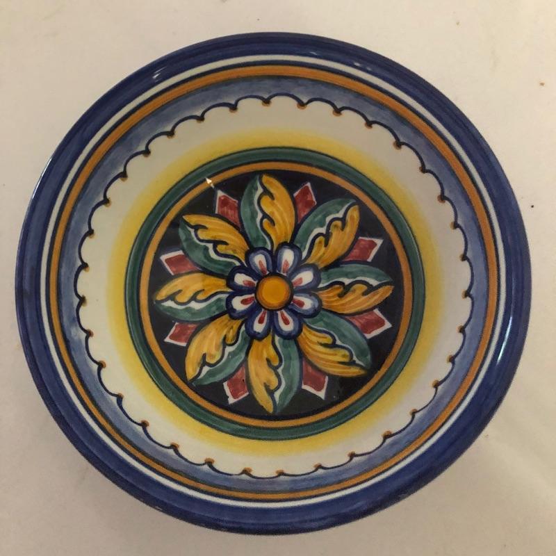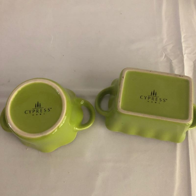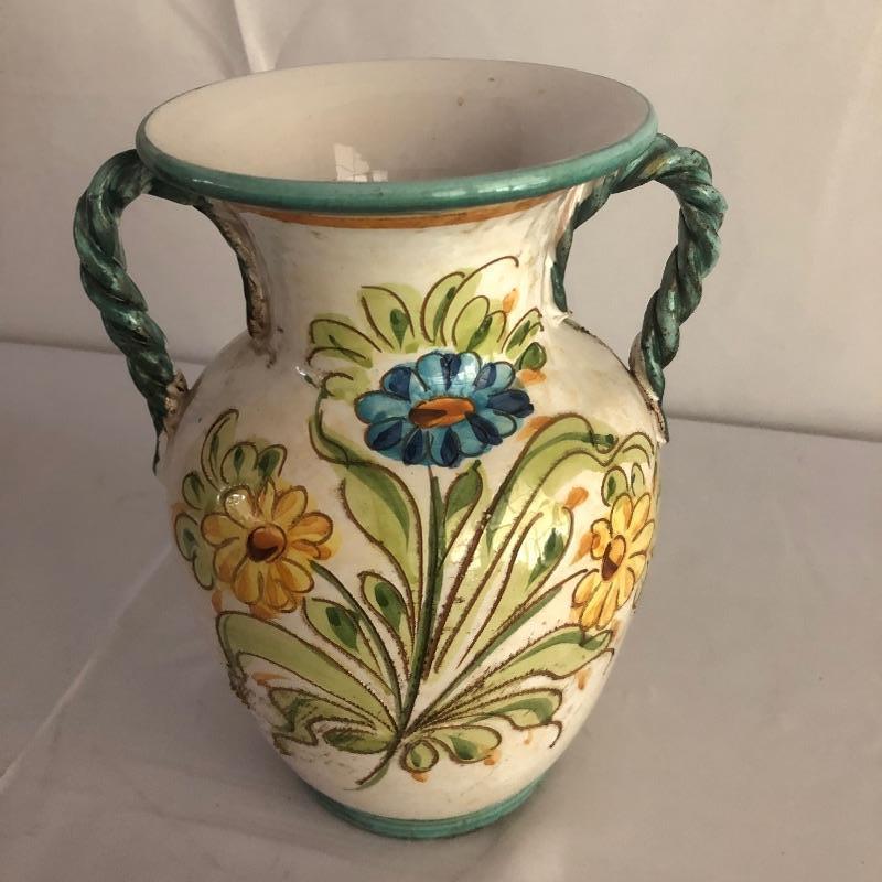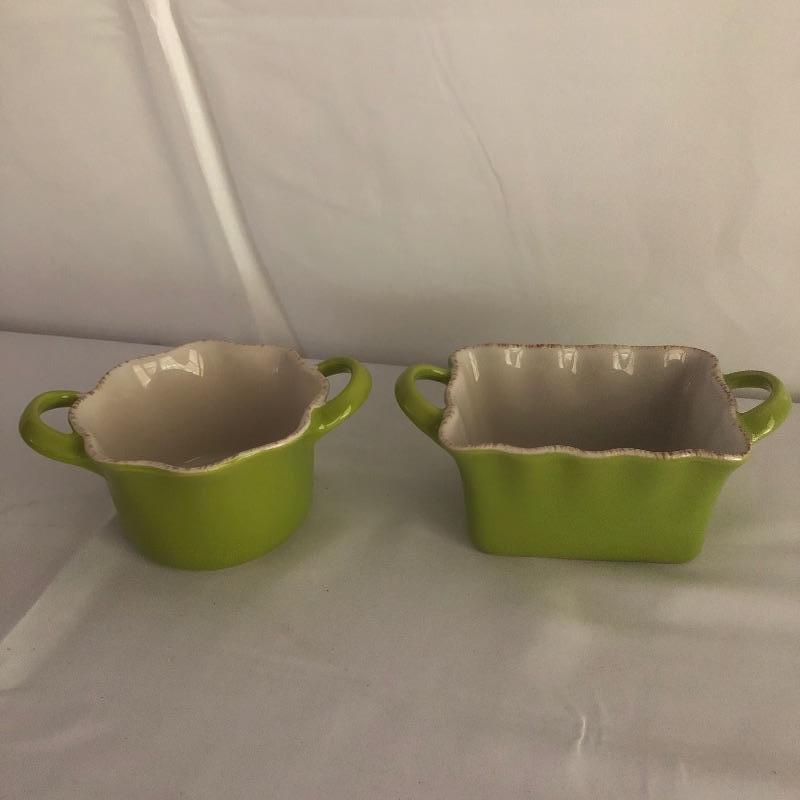 Italian dishware. Included is a large vase, serving dish, two small green dishes, two small white bowls, salt and pepper shakers with a matching dish, and so much more! The incredible detailing on these pieces would add lots of character to any kitchen.