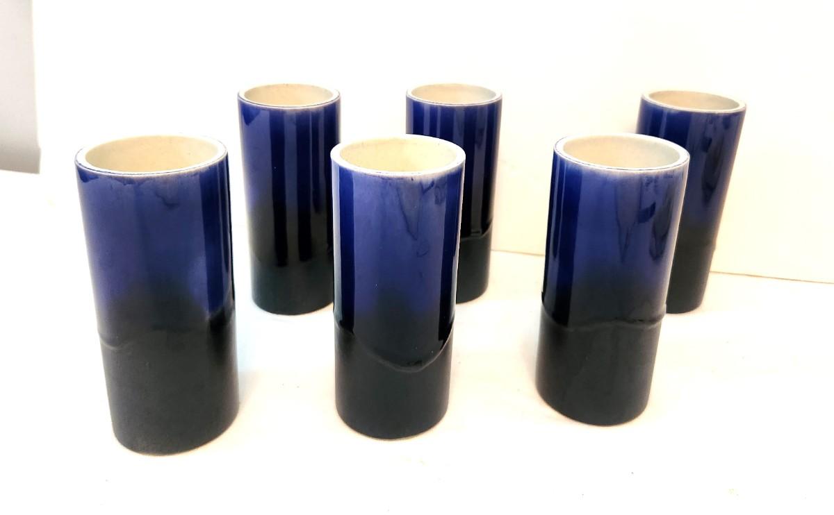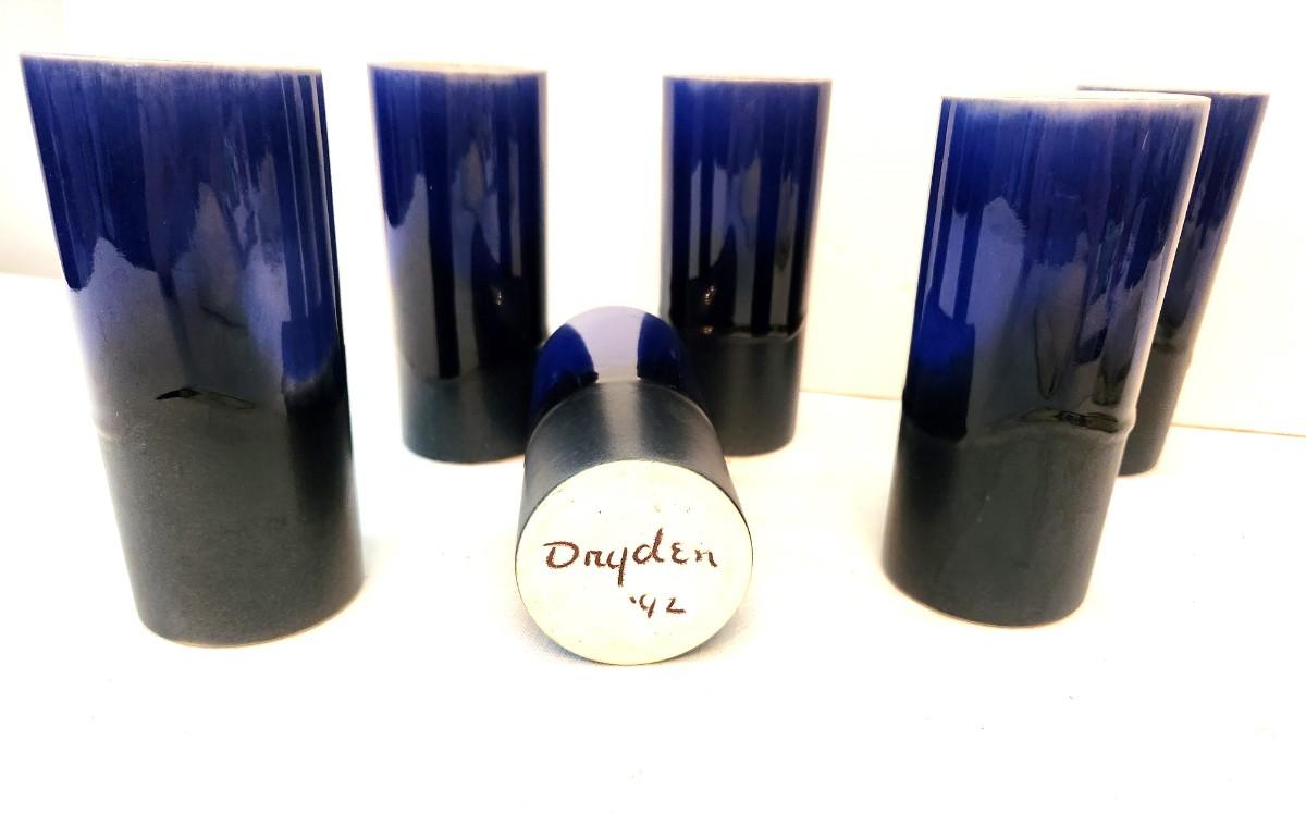 Arkansas Pottery by JK Dryden - lot of 6 cobalt blue tumblers, signed on bottom Each 6" tall, all in good condition.