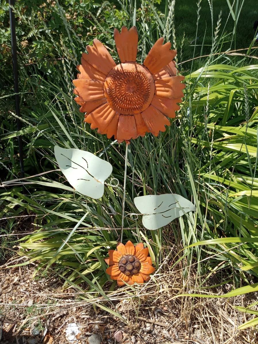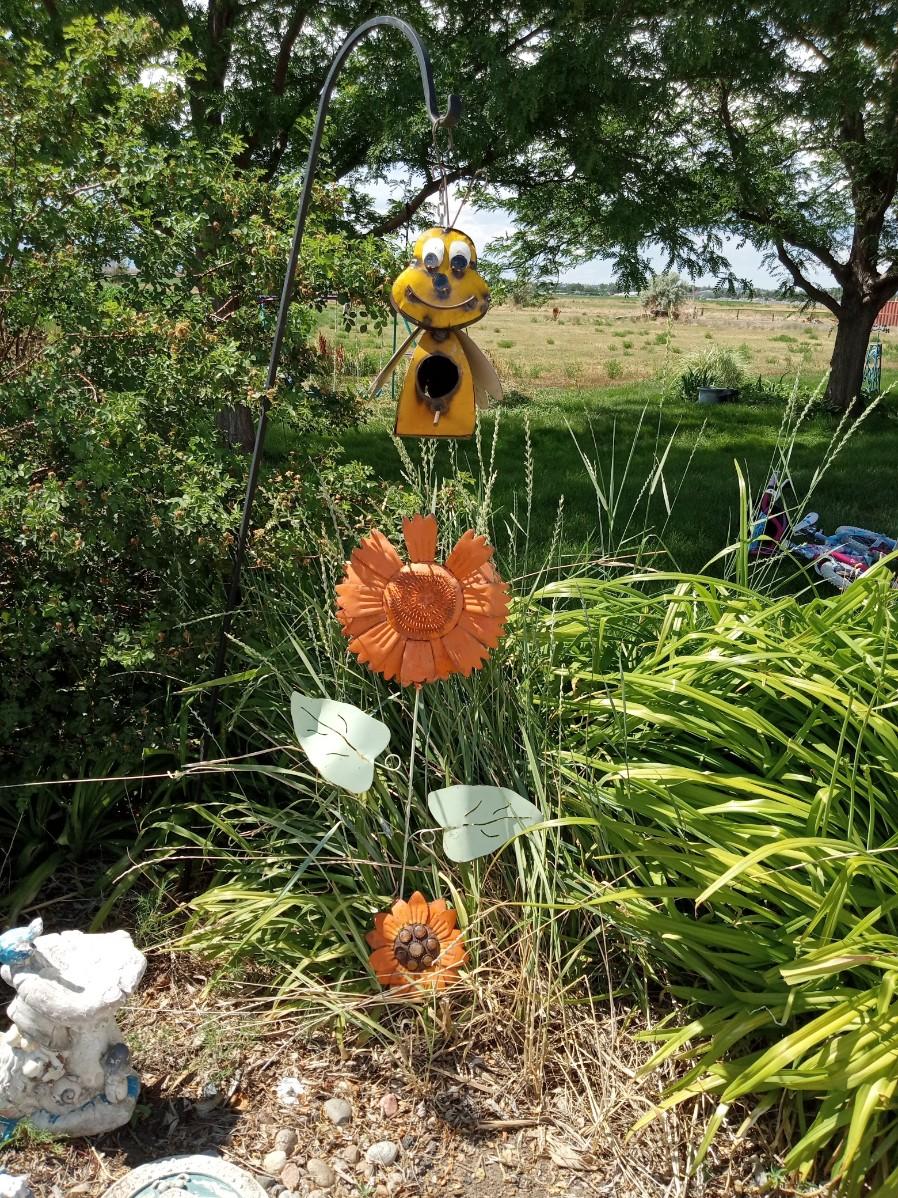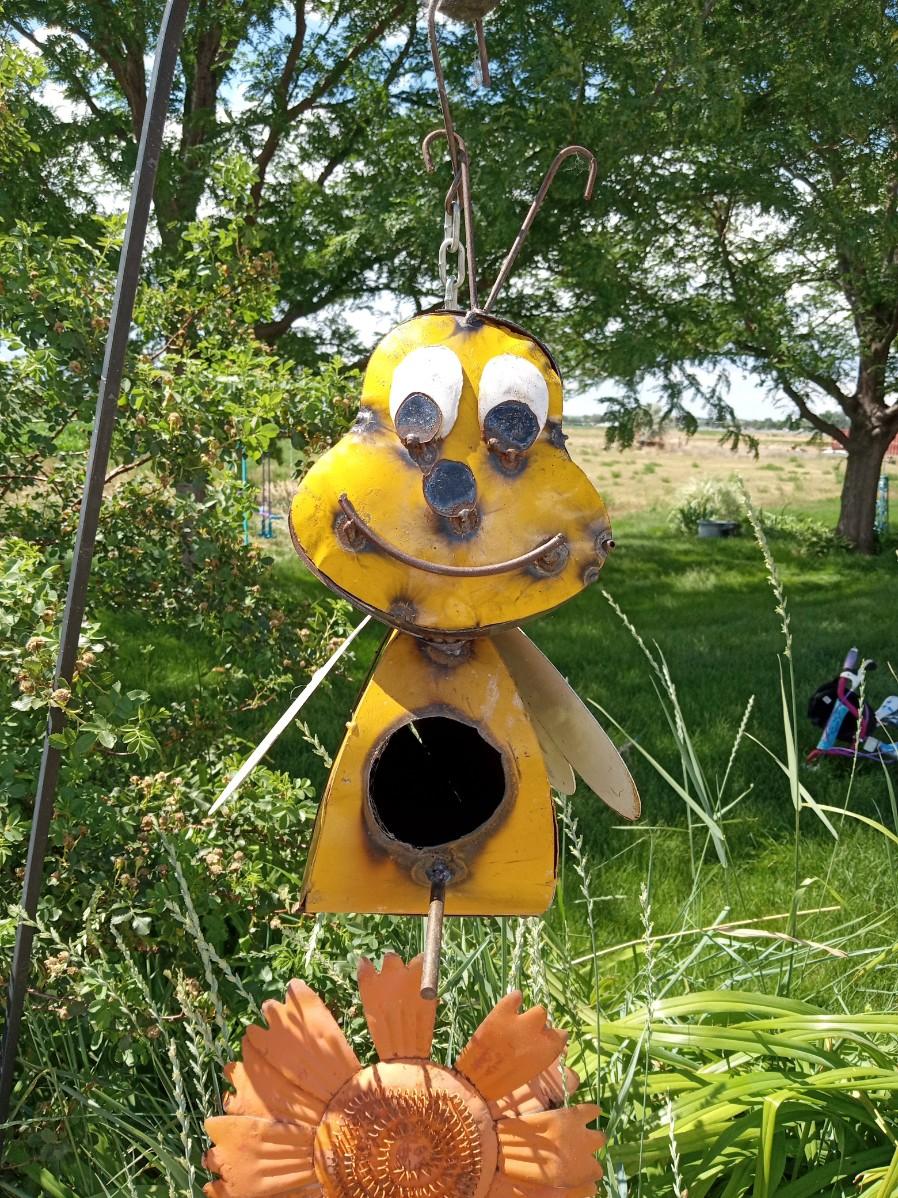 LOT 325 METAL BEE BIRD HOUSE AND A TIN STAKED FLOWER (OB)
