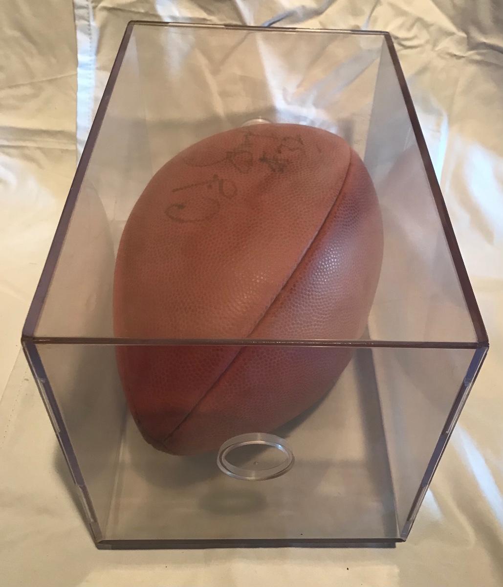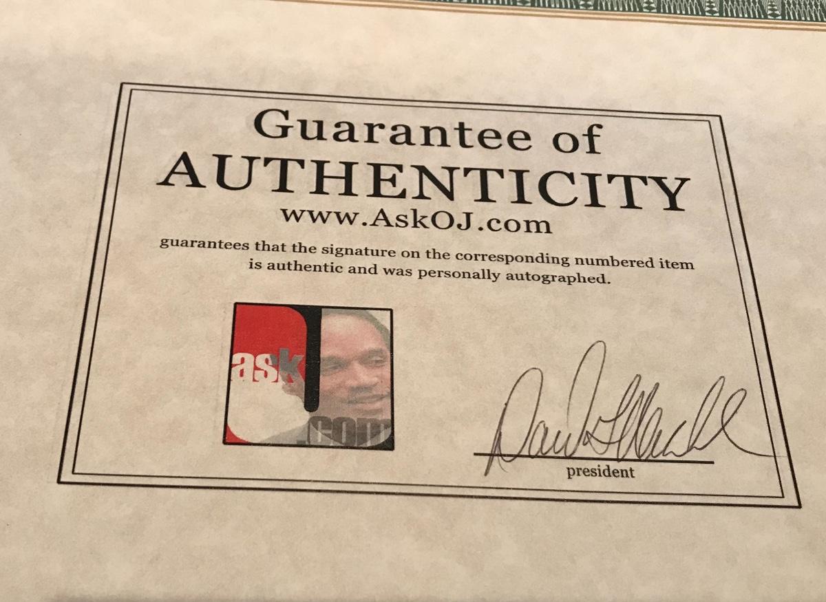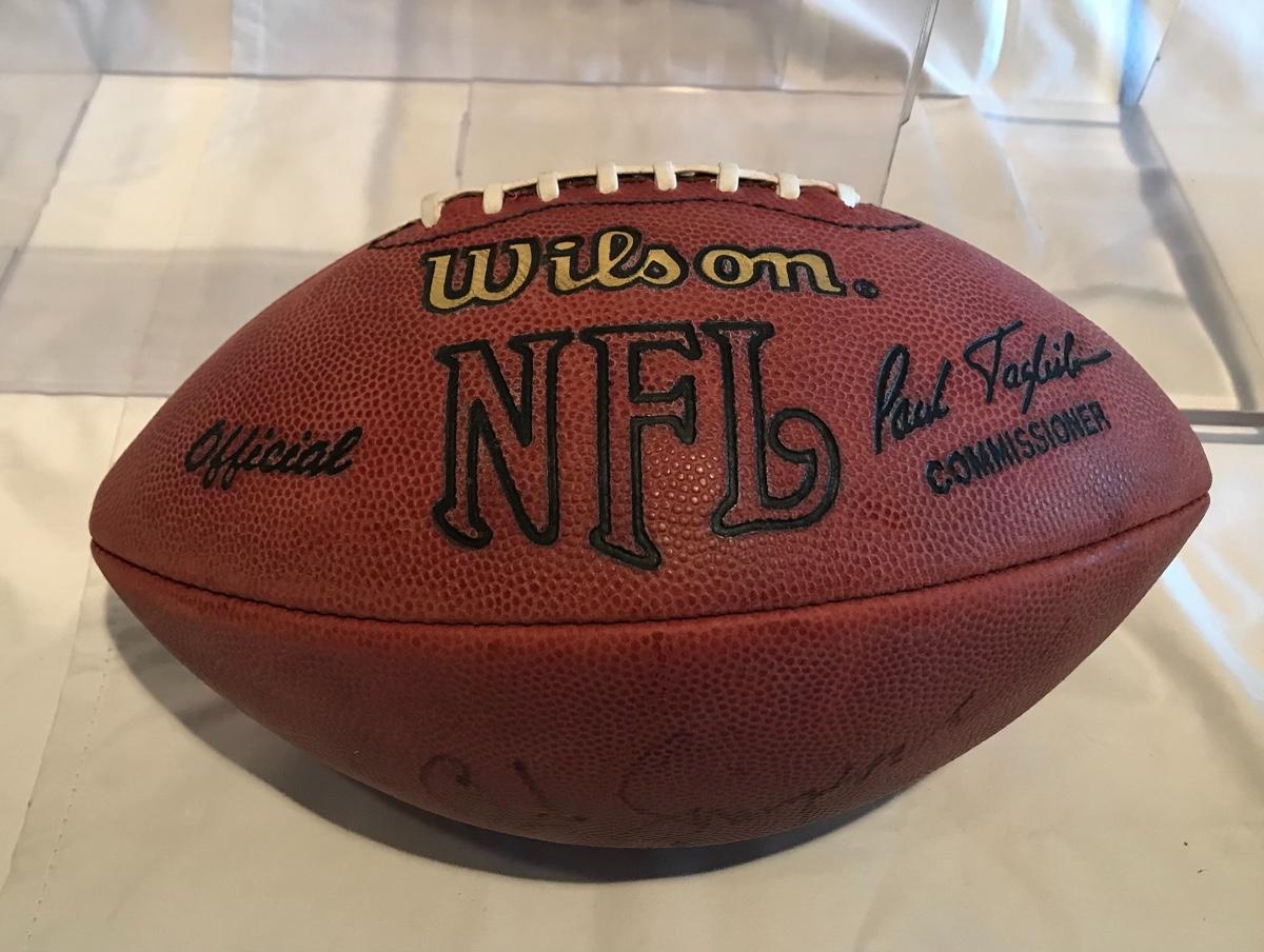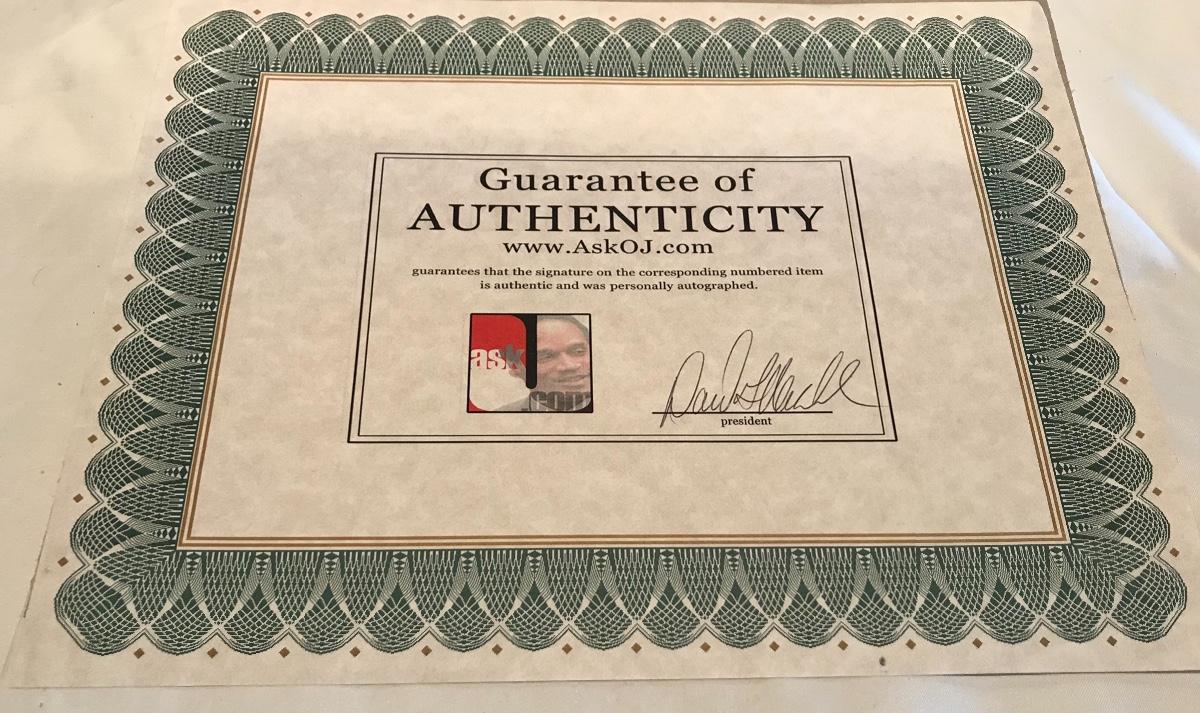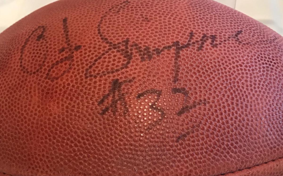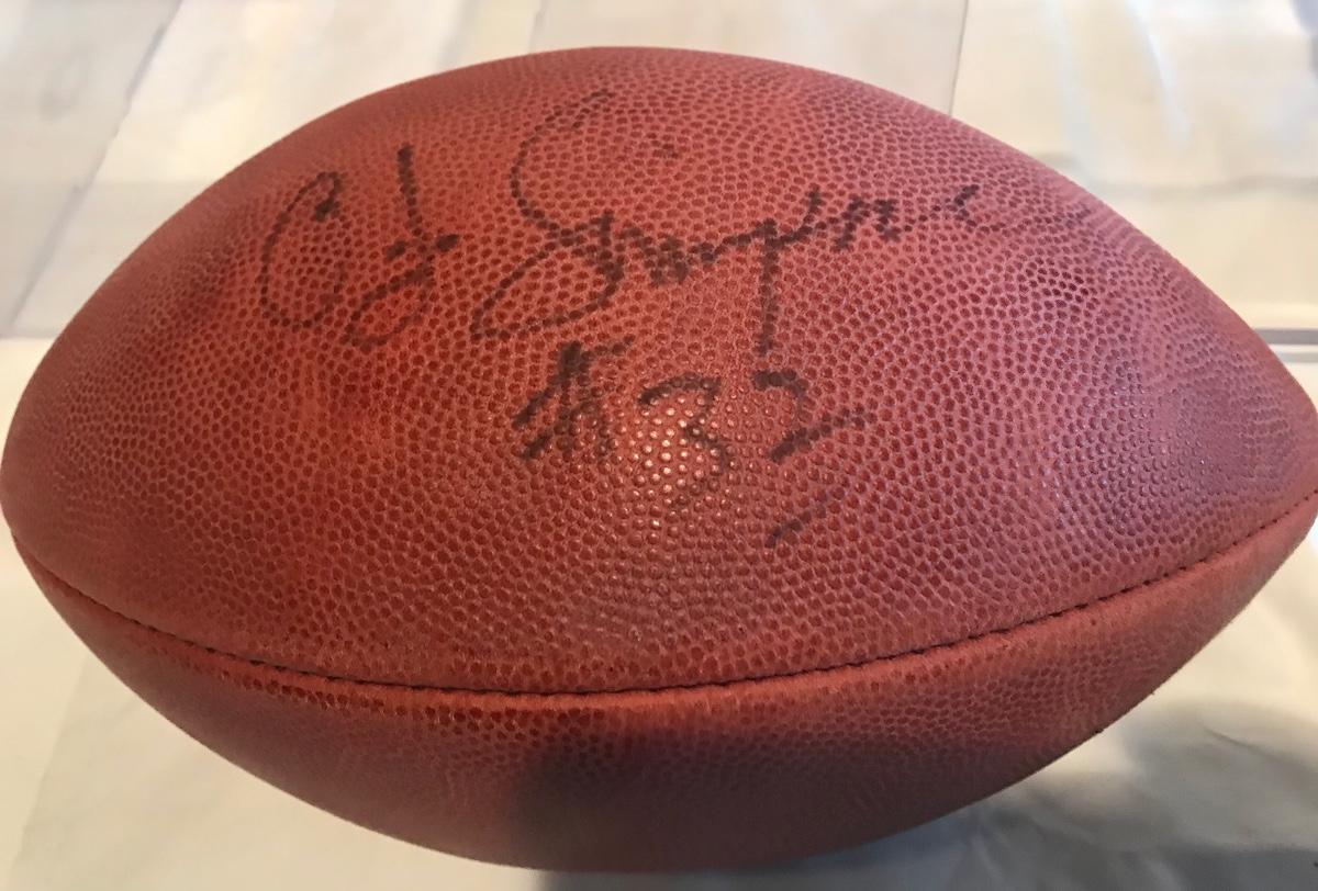 Official NFL football autographed by O.J. Simpson, includes plastic case and certificate of authenticity. The pictures show condition, measurements if taken, and what is included in the lot. Due to the large amount that we photograph and the time frame, we are not always able to take measurements. All items unless noted, are pre-owned and have been used. If you purchased furniture, you must bring help. We do not allow one person to carry large furniture out on their own. Bring help, tools and a truck for the safety of our client’s homes, and your personal safety. Company policy. Thank you.