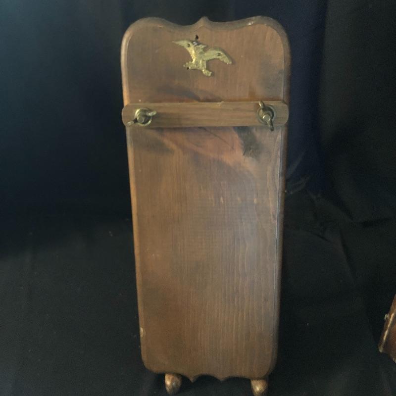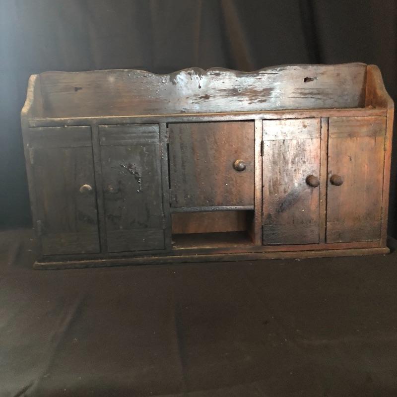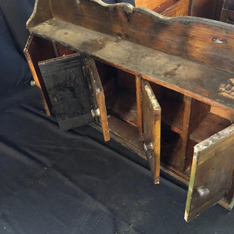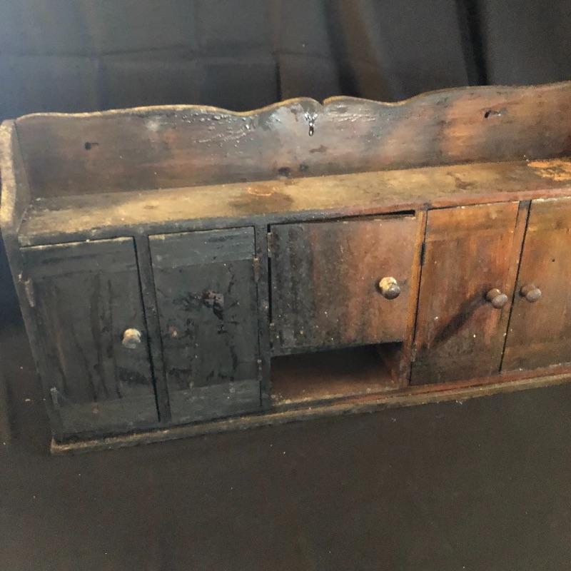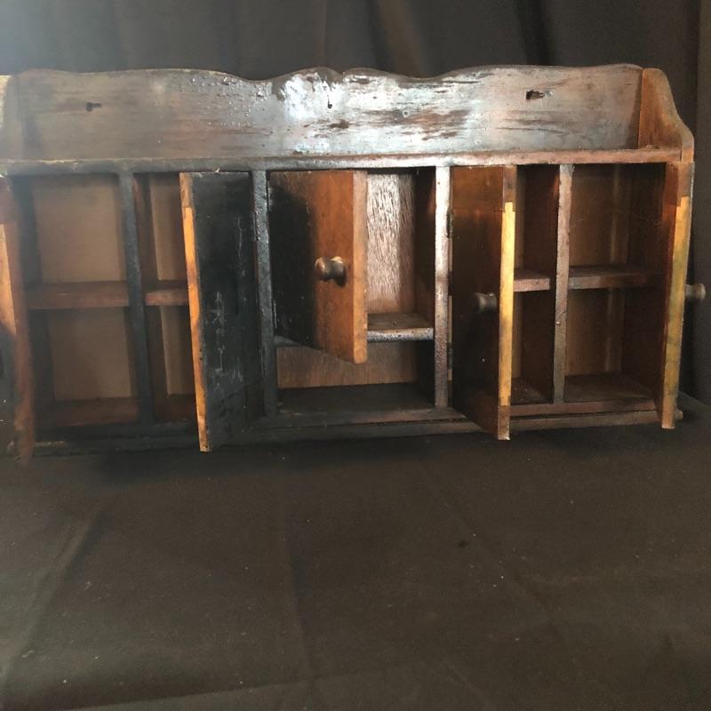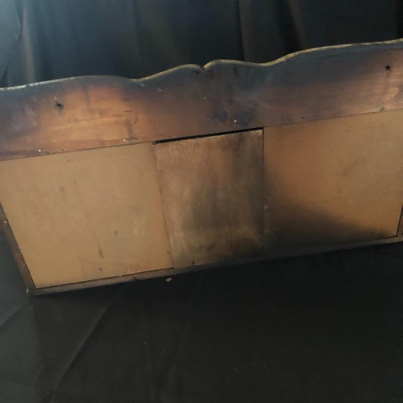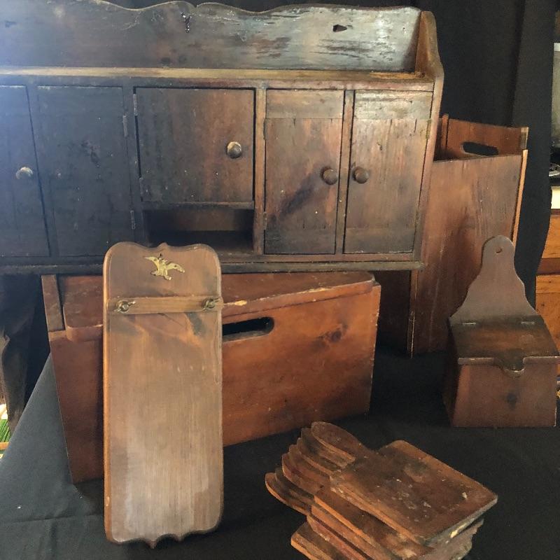 This lot contains handcrafted items that will help to organize your home! There is a potato or onion storage box, five drawer cabinet, waste can, list holder, match holder and eight cutting boards. All look to be home made. The potato storage box measures 18” x 10” high and 16” deep. Local pick up only.