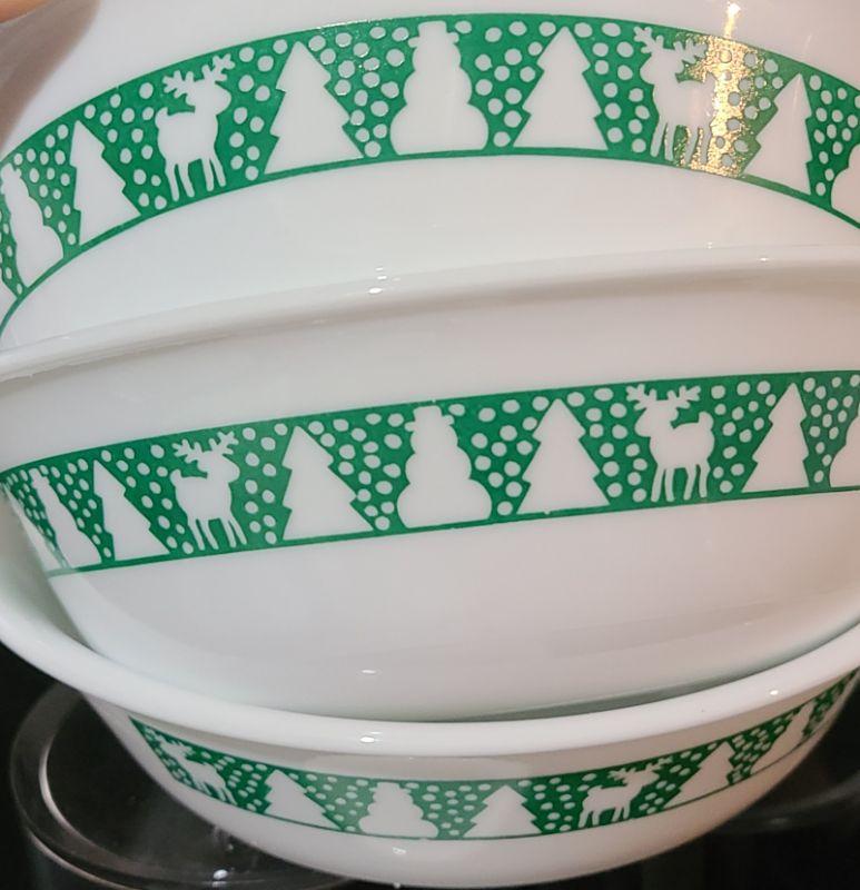 Lot 25: Pyrex Mixing Bowls, Corelle Christmas