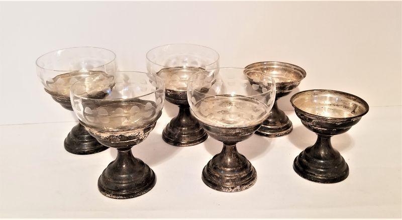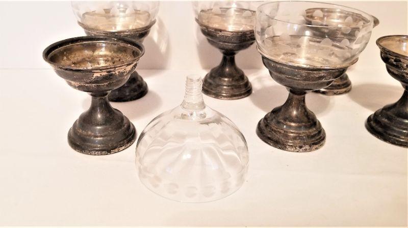 Lot #25  Set of Sterling Silver Dessert bases with glass liners
