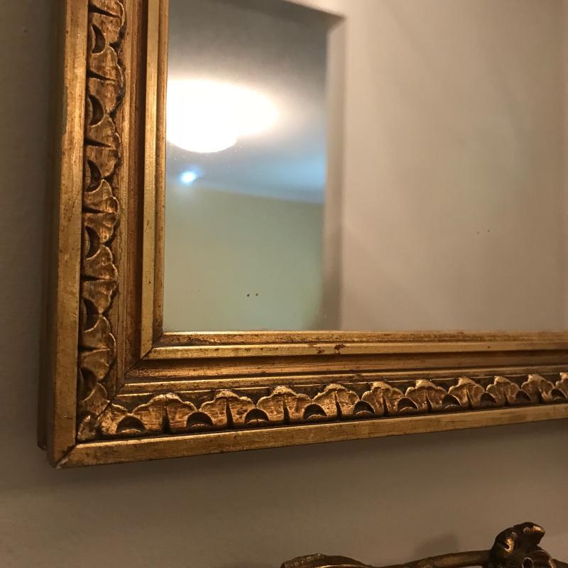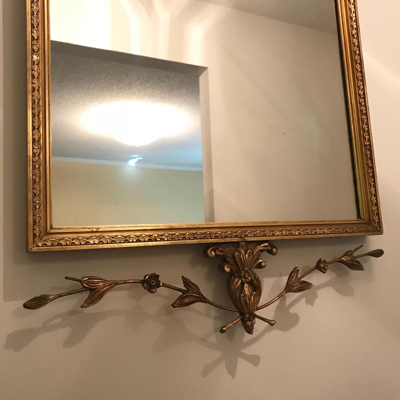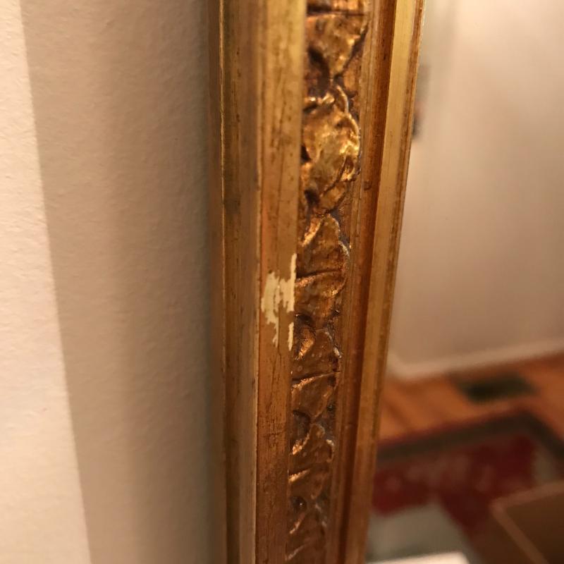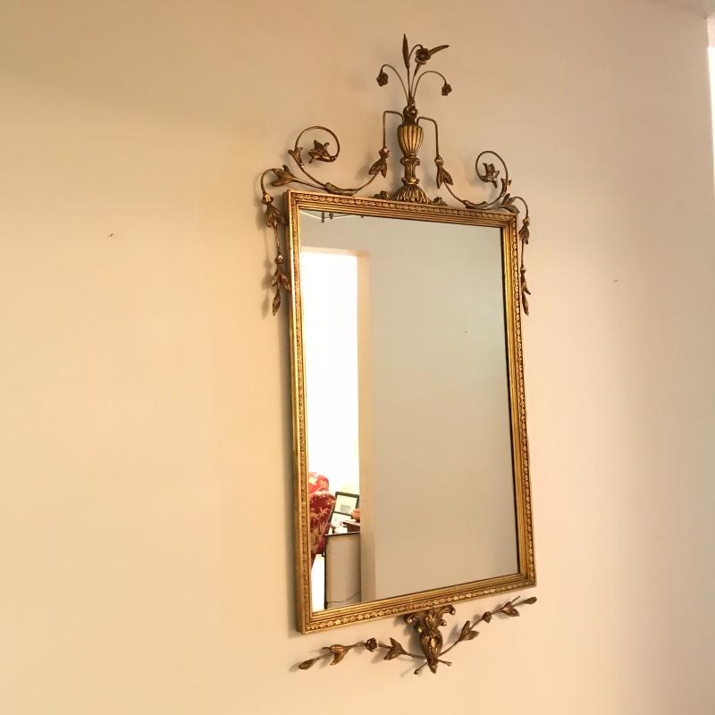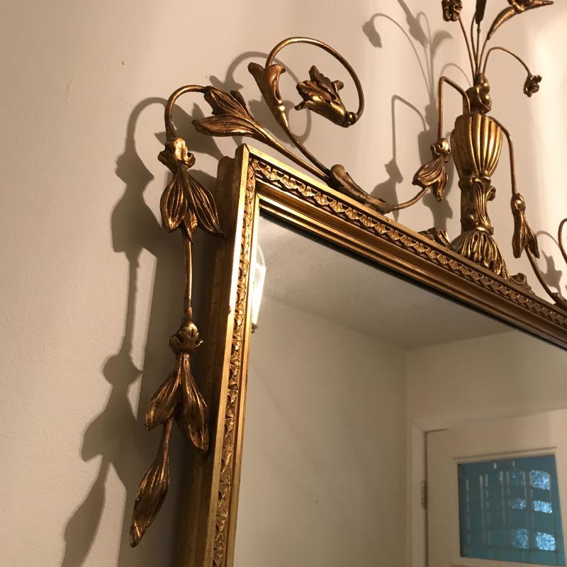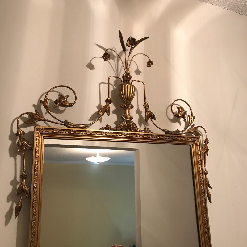 Add some elegance to any room with this beautifully detailed, heavy, framed mirror. Total measurements are 25.5”x49”, the mirror itself measures 21.5”x31.5”. Local pick up only.