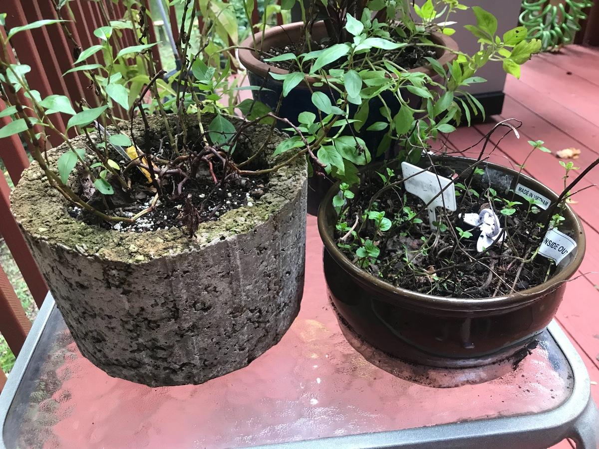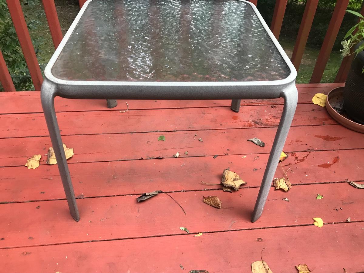 A cement planter with plant, a glazed terra cotta pot with plant, and a ceramic planter with plants. Metal and glass table is included. Please see all pictures as they are the best representation of the items. The pictures show condition, measurements if taken, and what is included in the lot. Due to the large amount that we photograph and the time frame, we are not always able to take measurements. All items unless noted, are pre-owned and have been used. If you purchased furniture, you must bring help. We do not allow one person to carry large furniture out on their own. Bring help, tools and a truck for the safety of our client’s homes, and your personal safety. Company policy. Thank you.