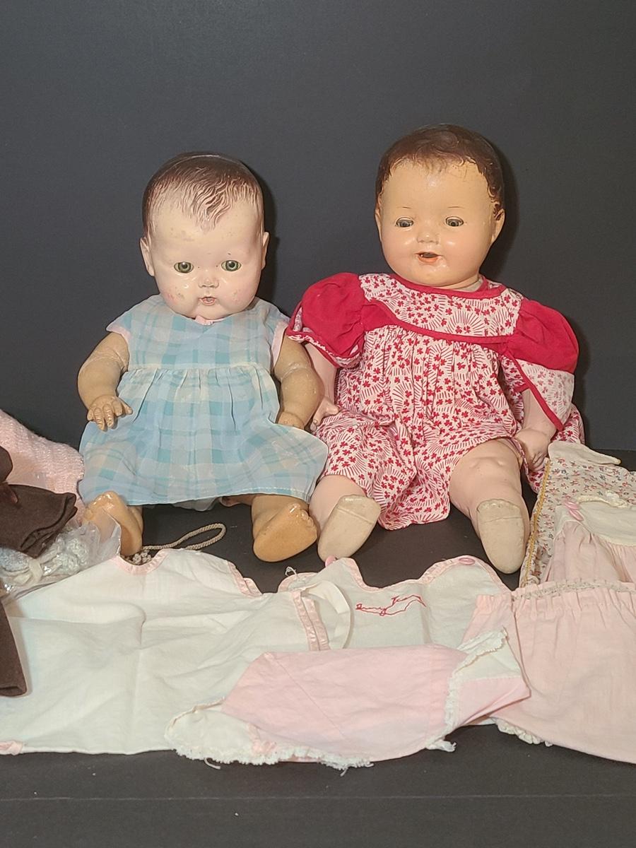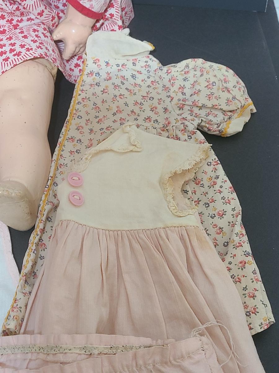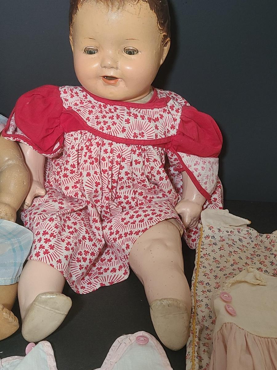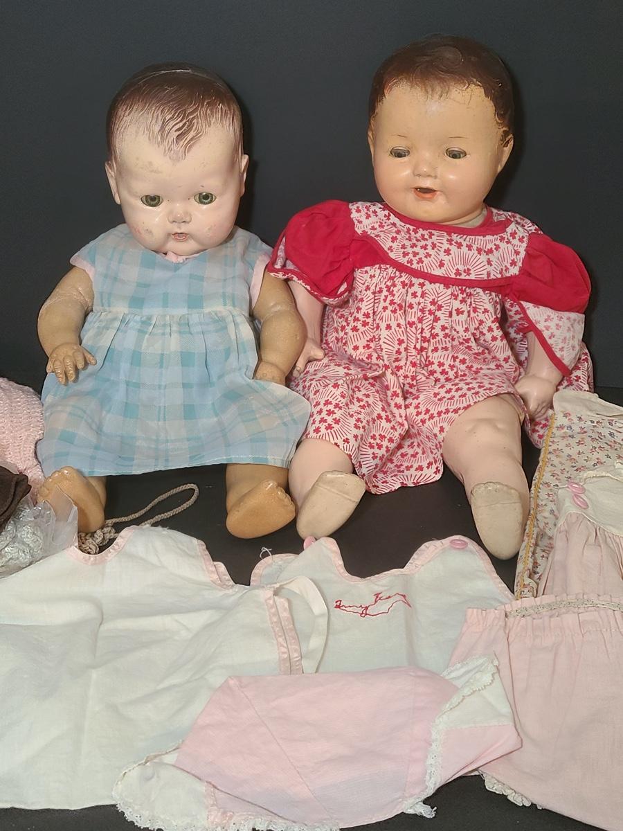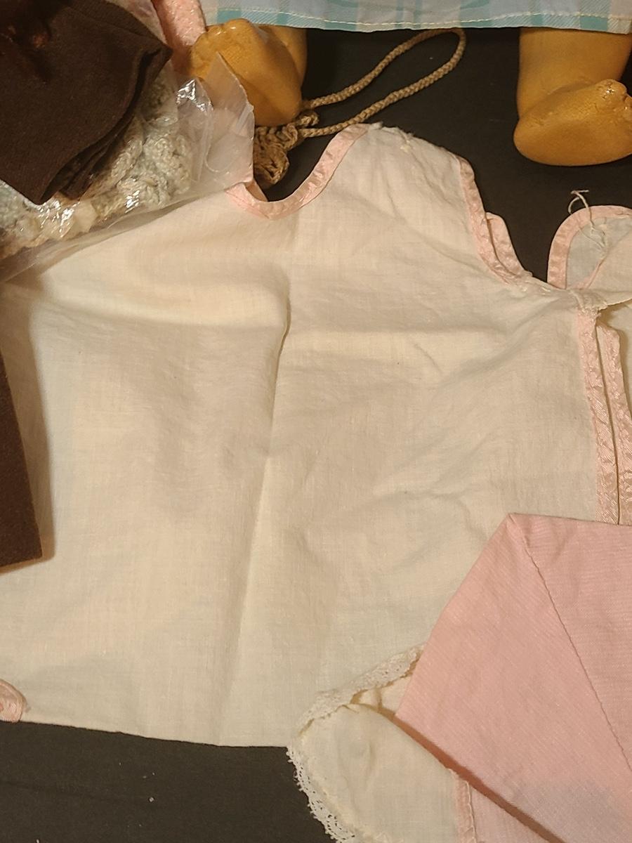 Lot 25: Vintage Dolls, Crocheted Purse, and Doll Clothes