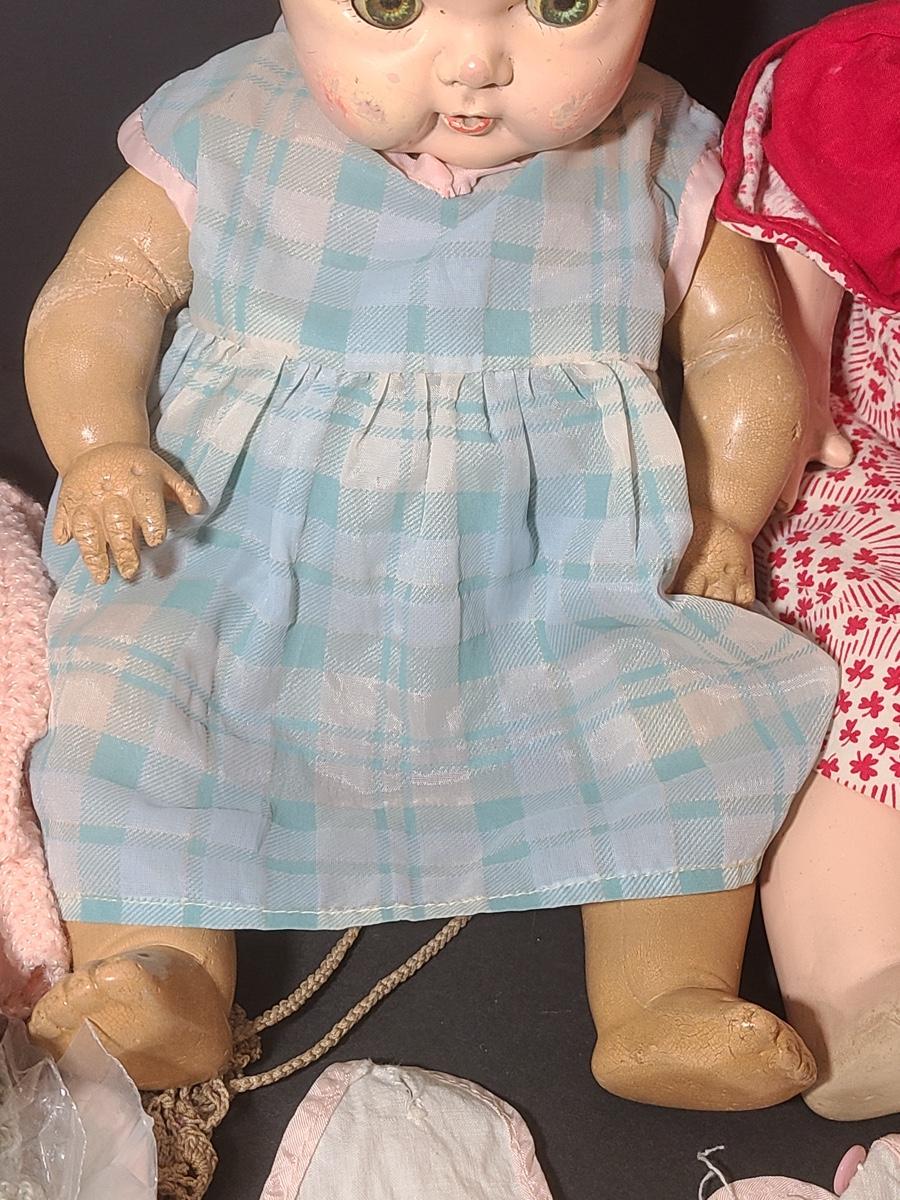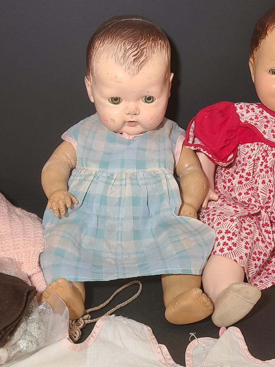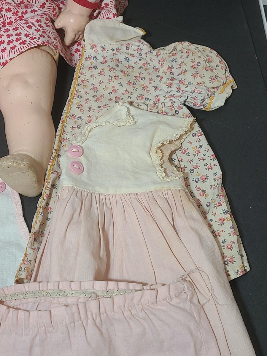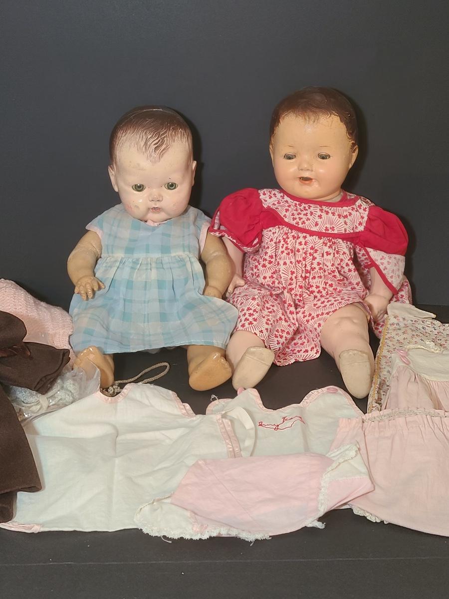 Lot 25: Vintage Dolls, Crocheted Purse, and Doll Clothes