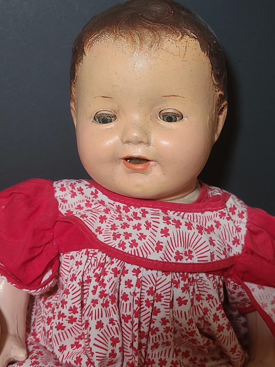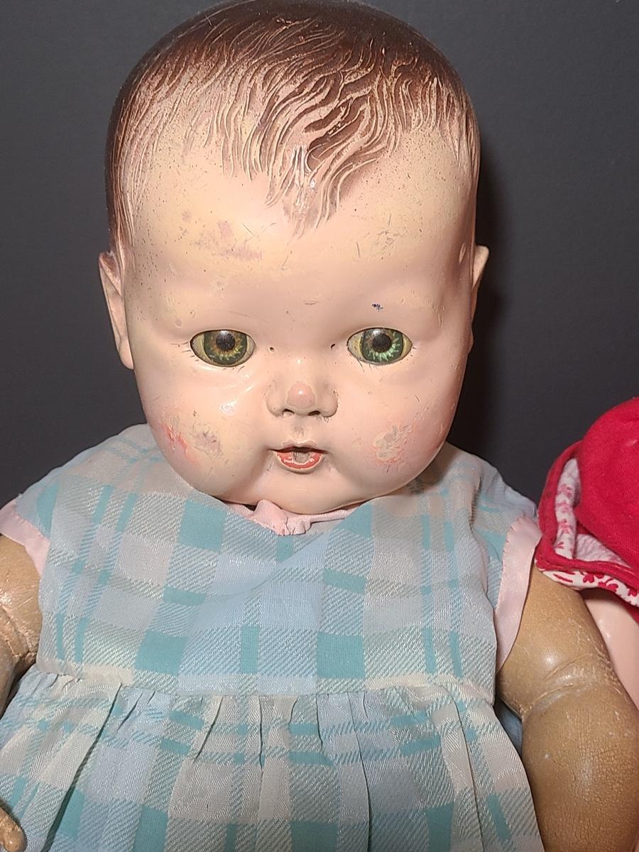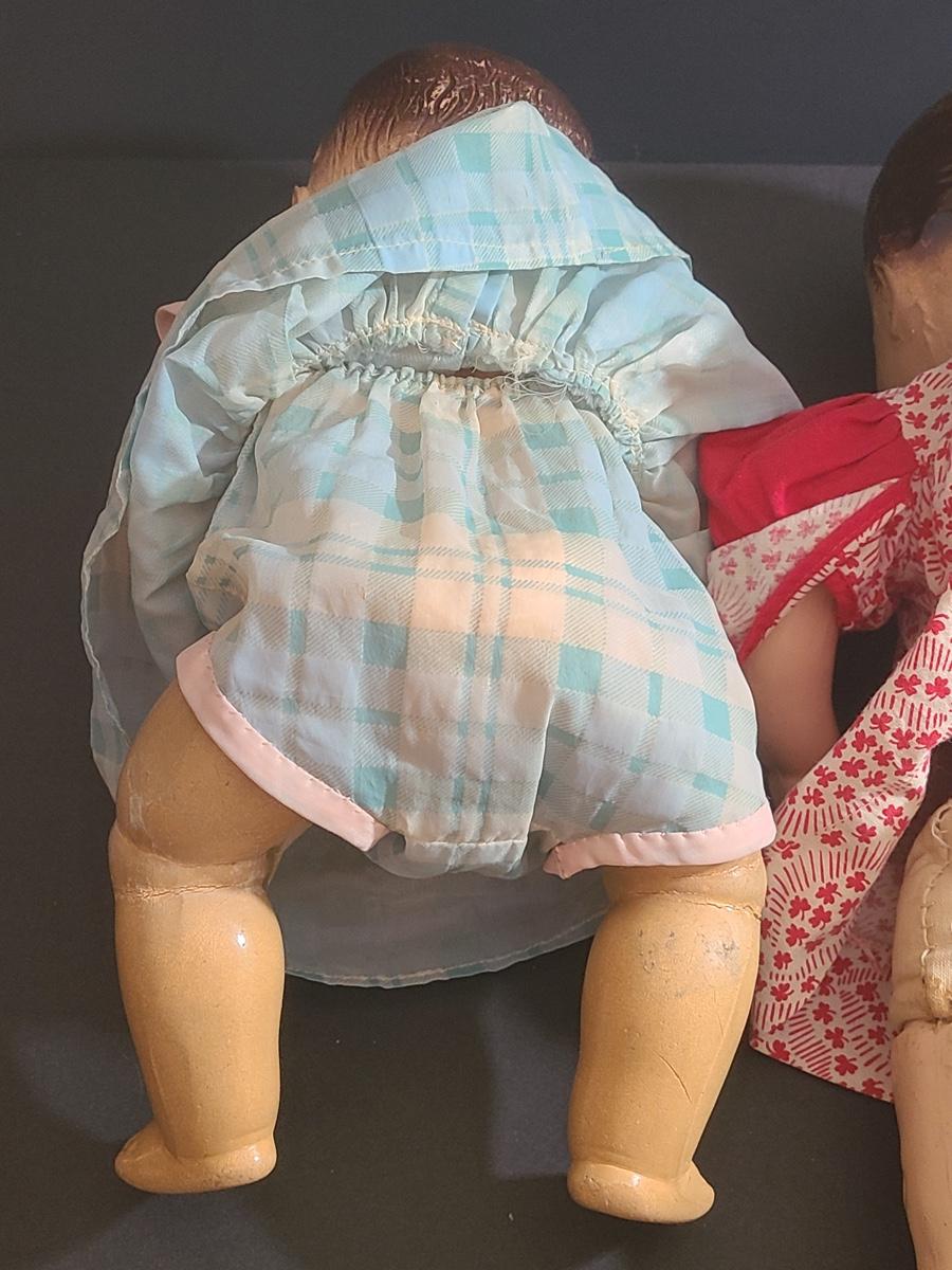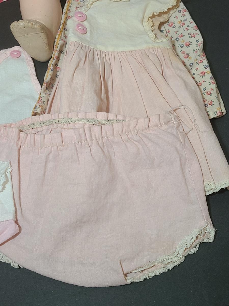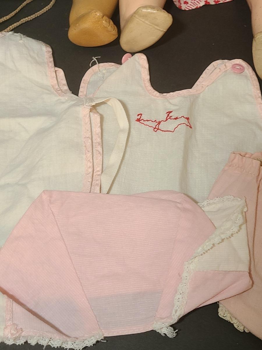 Lot 25: Vintage Dolls, Crocheted Purse, and Doll Clothes