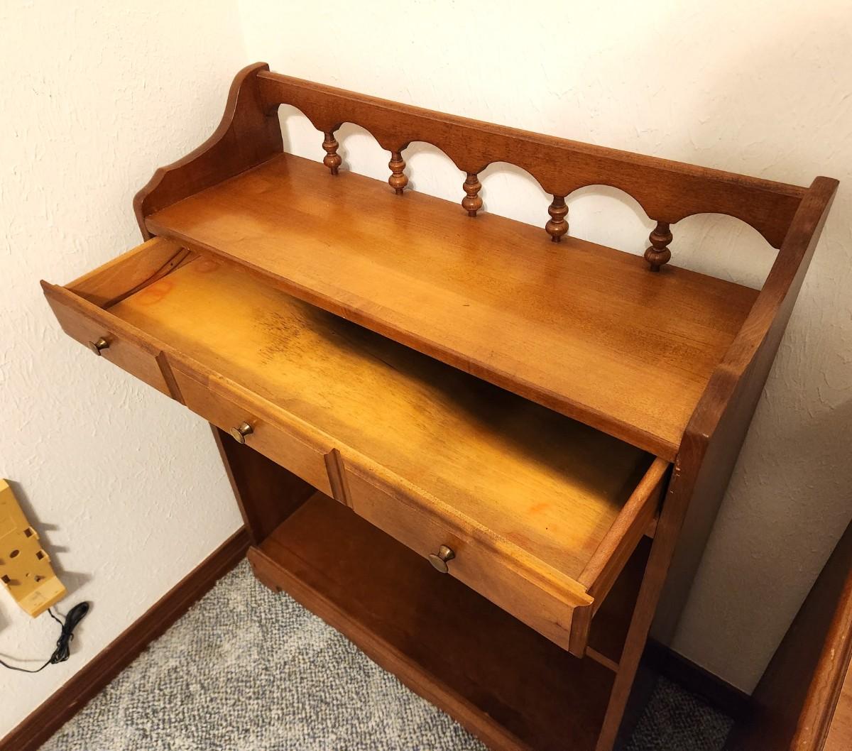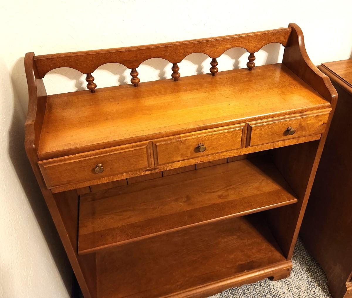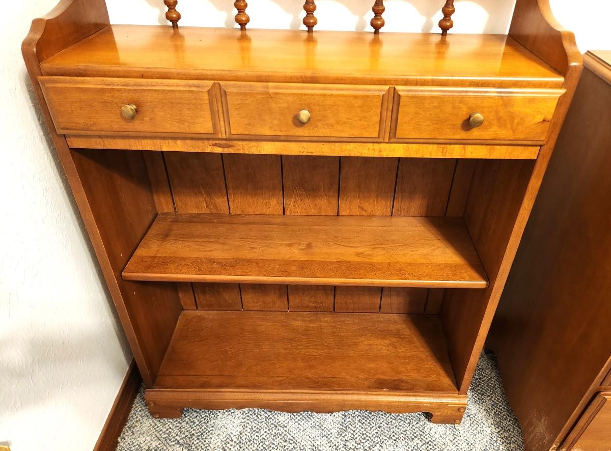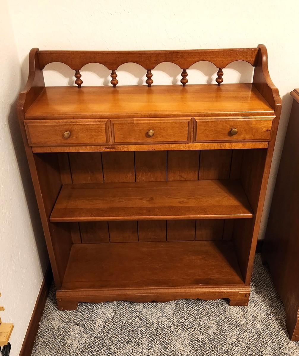 Vintage Colonial Style Bookcase - adjustable shelves, good vintage condition. 38" tall at back, 30" across, 10" deep. 1970's.