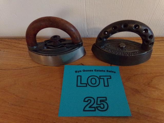 LOT 25 VINTAGE ENTERPRISE SAD IRON AND ANTIQUE ASBESTOS SAD IRON