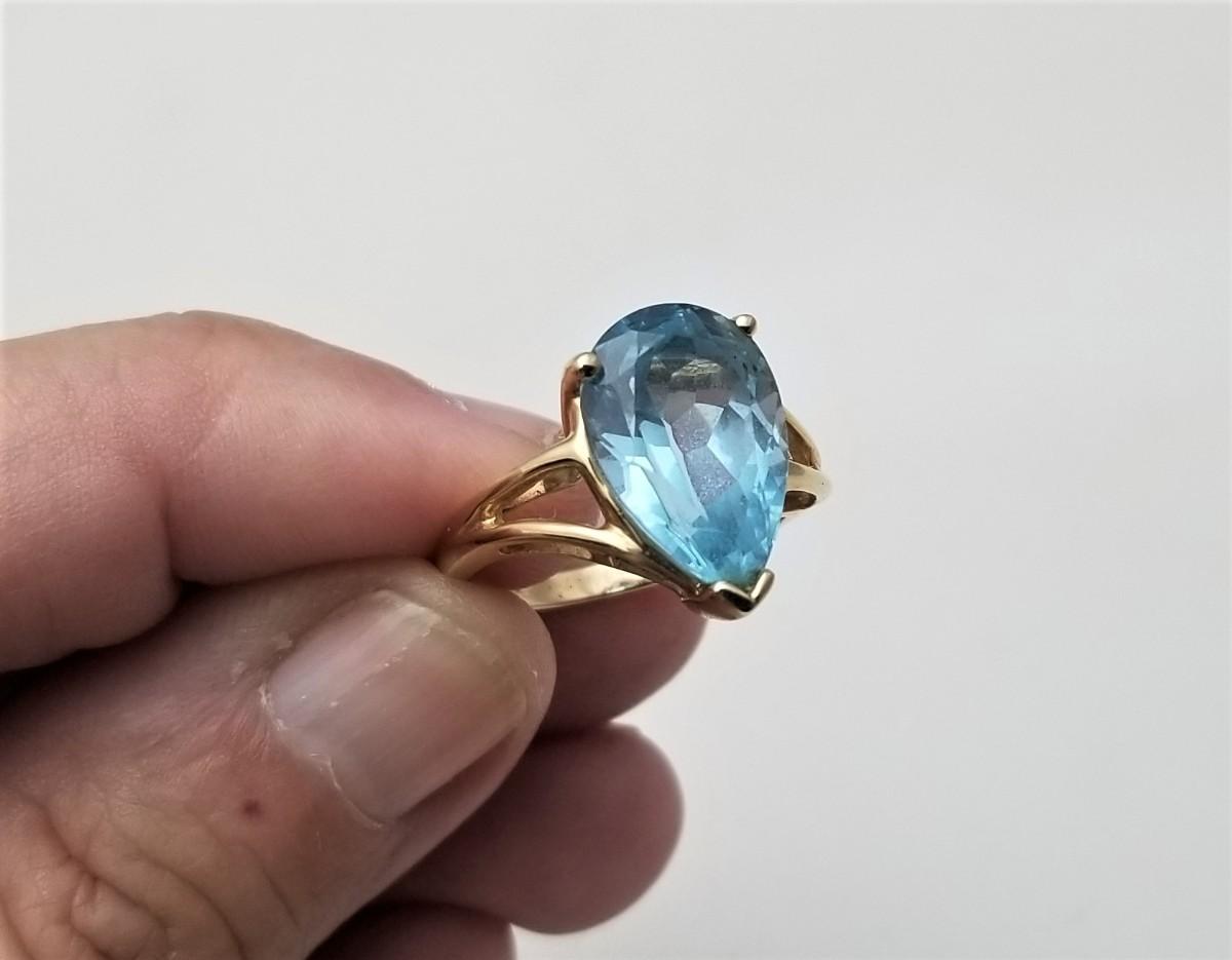 Lot #250 14kt Yellow Gold Ring set with Blue Topaz, size 8
