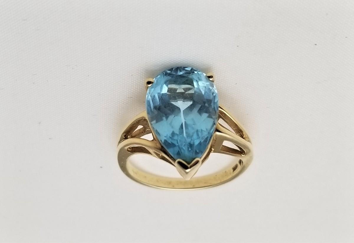 Lot #250  14kt Yellow Gold Ring set with Blue Topaz, size 8