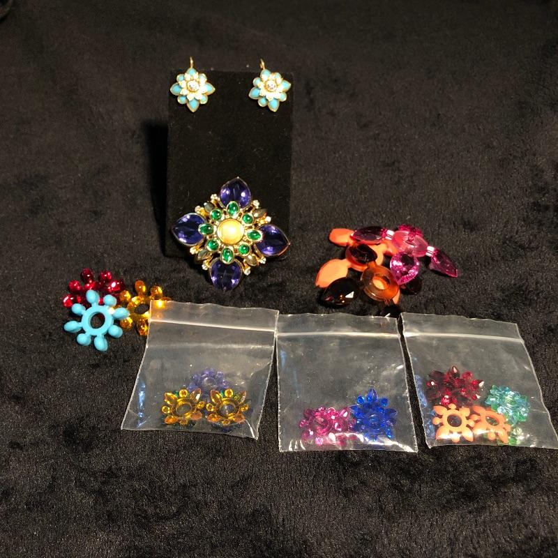 Lovely pair of Joan Rivers earrings and pin. Also included are some replacement parts for jewelry that we are unsure of what they go on.