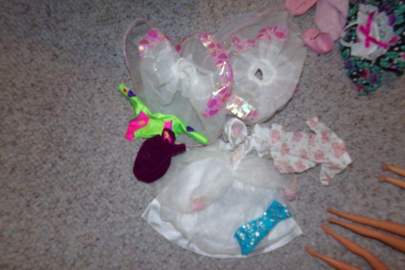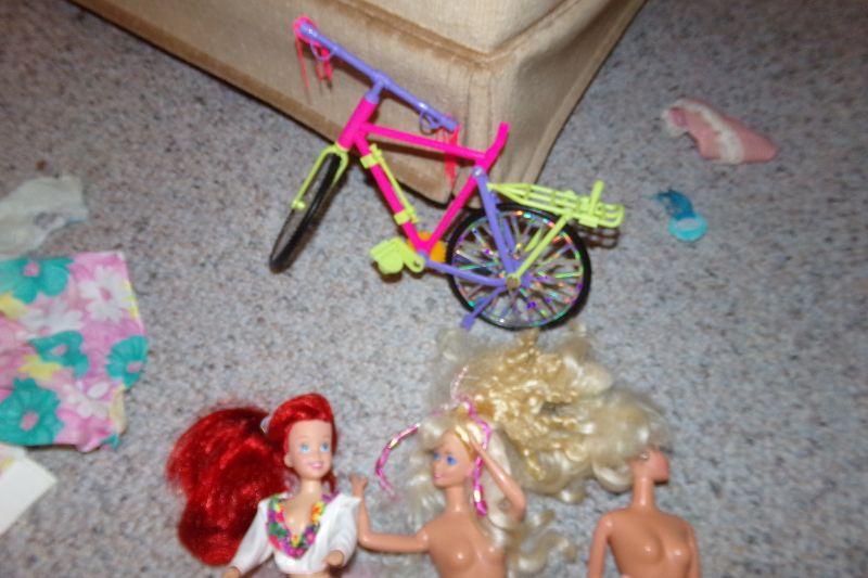 PLENTY OF BARBIE CLOTHES, BIKE AND SMALL CHEST TO HOLD THEM ALL
