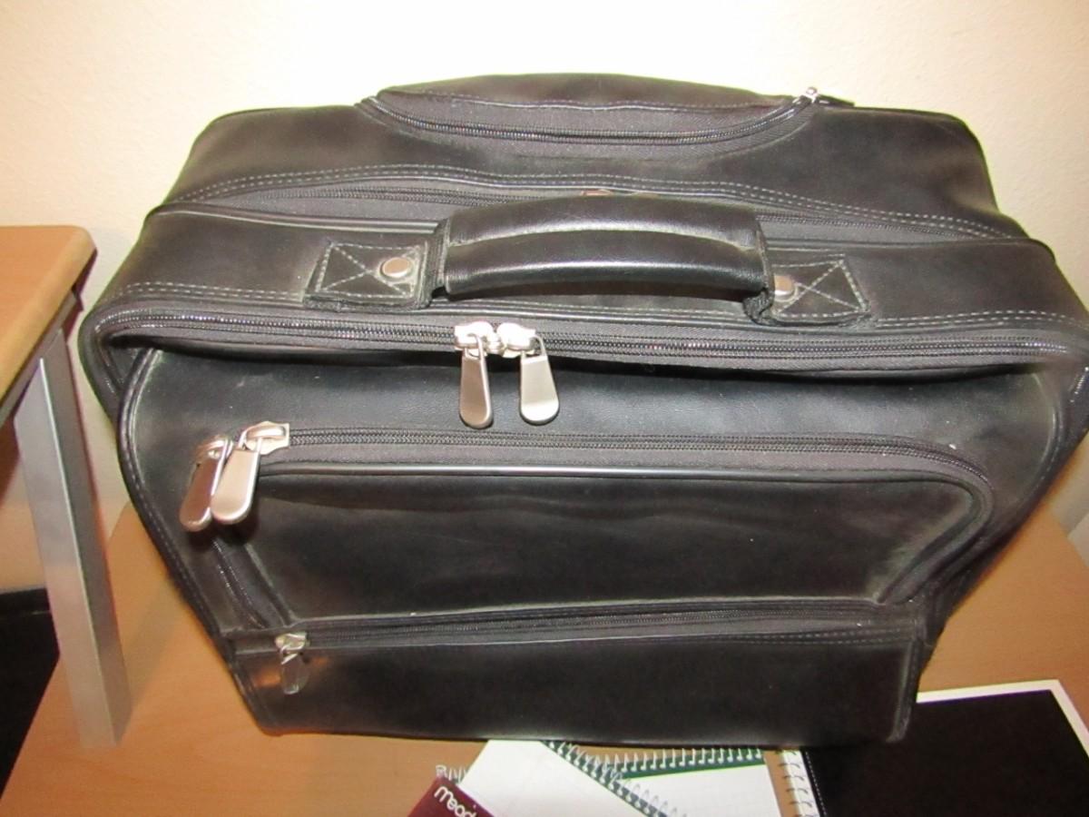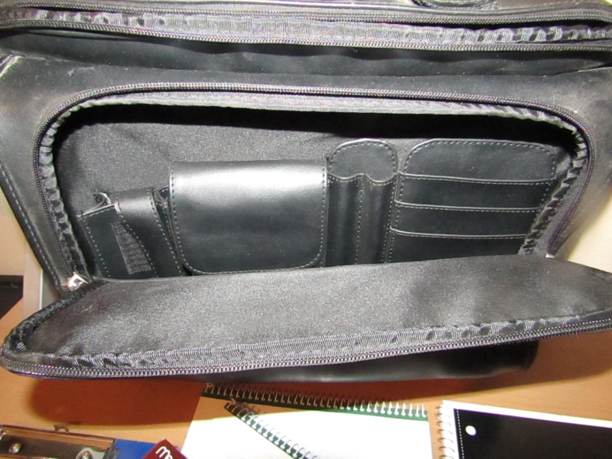 THERE'S A LOT OF STORAGE IN THIS BRIEFCASE ON WHEELS AND IT'S IN GREAT SHAPE