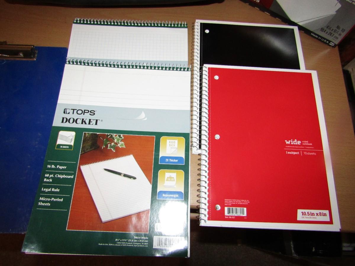 INCLUDES NOTEBOOKS, ENVELOPES AND A CLIP BOARD