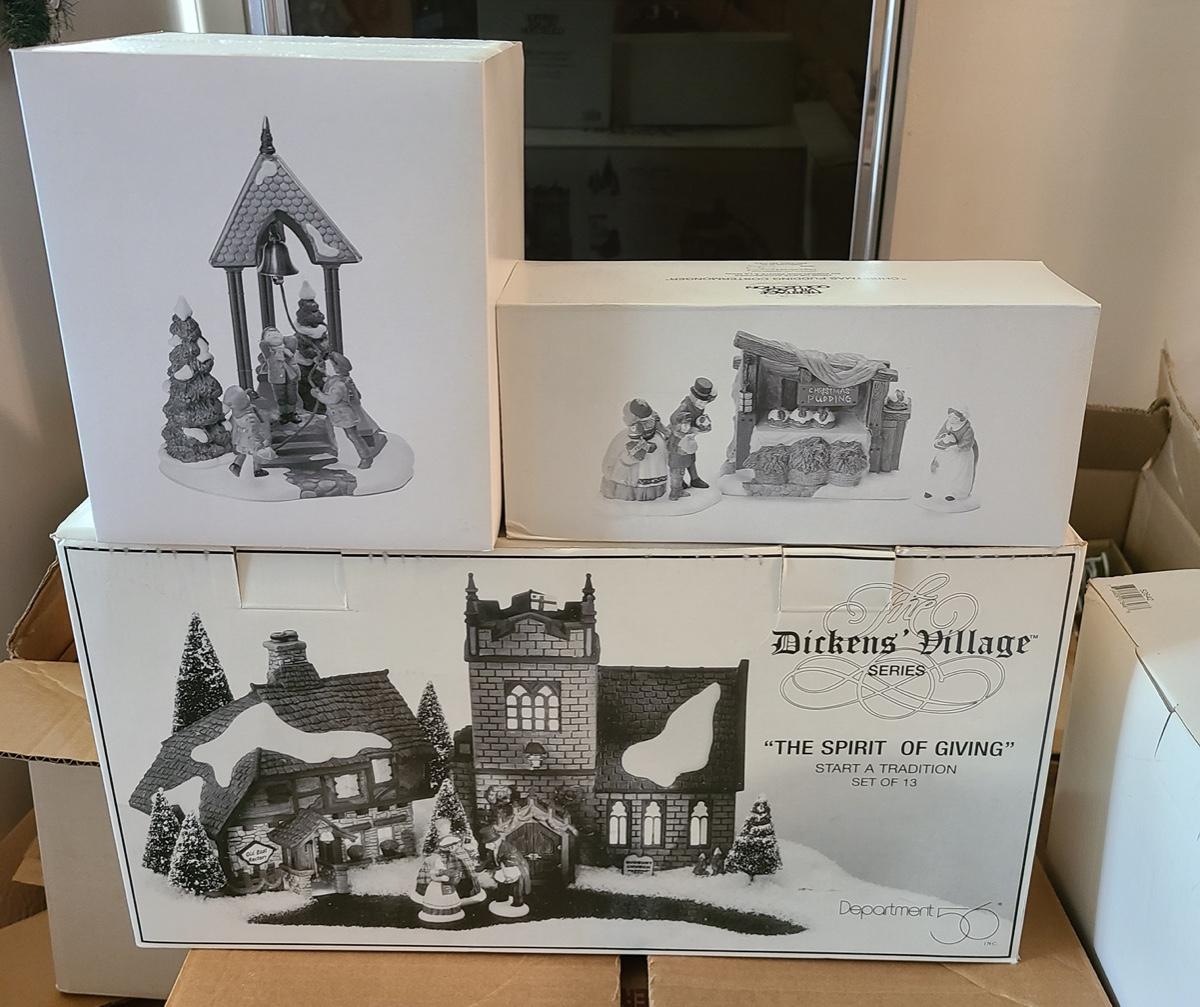 Lot 250: Dept 56: Dickens Village "The Spirit of Giving" Starter Set and More