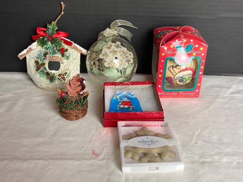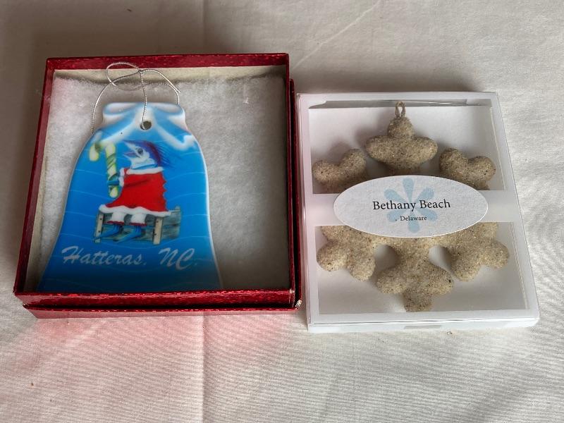 Outer Banks, Bethany Beach, Cape Hatteras, hand painted glass ball and “For Rent” ornament is made from a recycled aluminum can