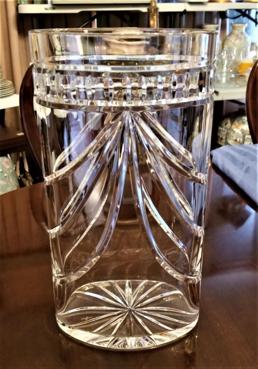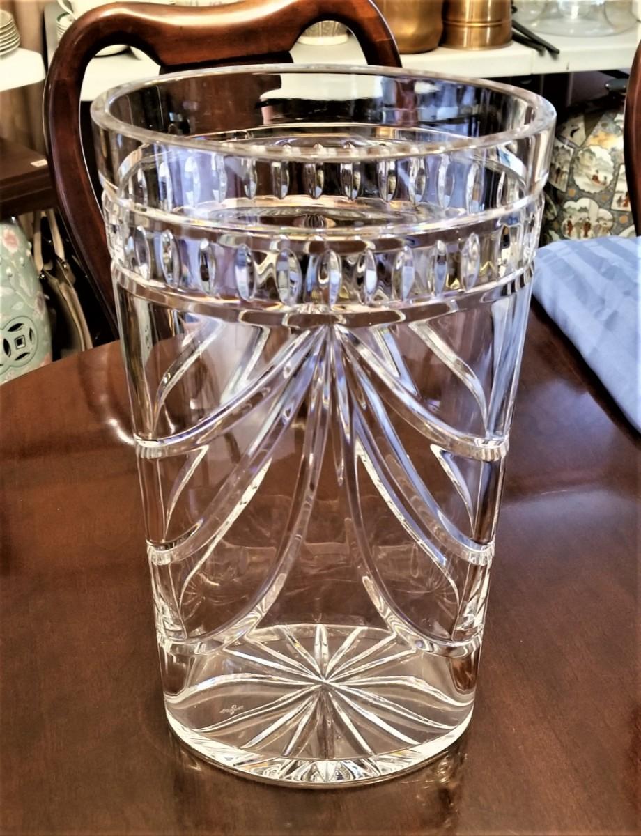 This beauty was made by WATERFORD from 1998 -2008. It's striking swirl pattern feature oblong cuts and reflect the light beautifully. No box. Great condition. Stands 14" tall - opening is 7.5" x 5.25".