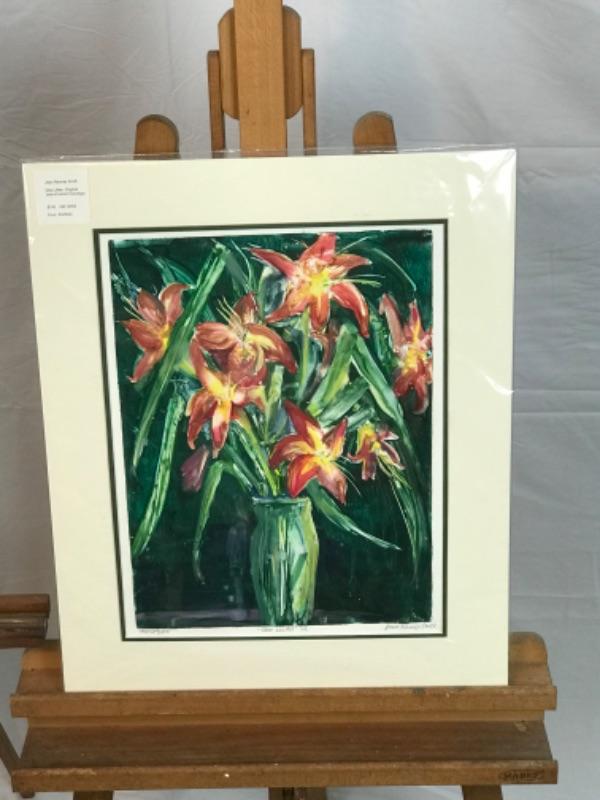 Jean Ranney Smith signed original monotype art “Day Lilies “ is matted and measures 22”x18”