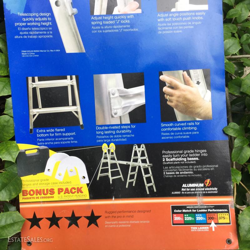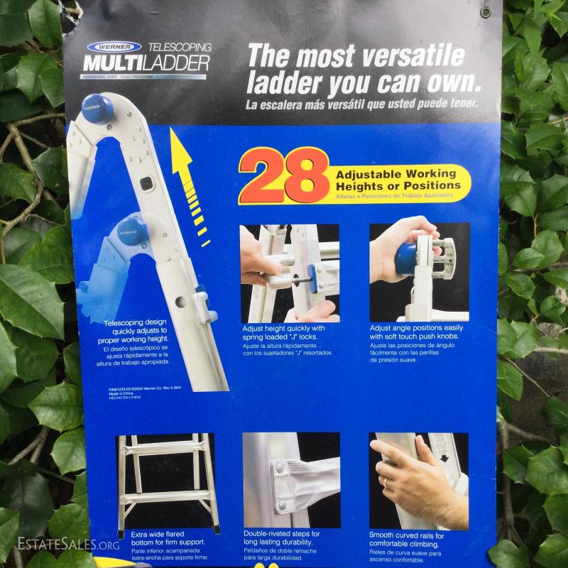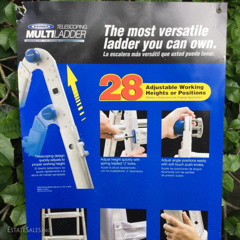 Werner 28-positions adjustable ladder, 300lb. weight limit. This lot is available for local pick up in Hendersonville, NC only.