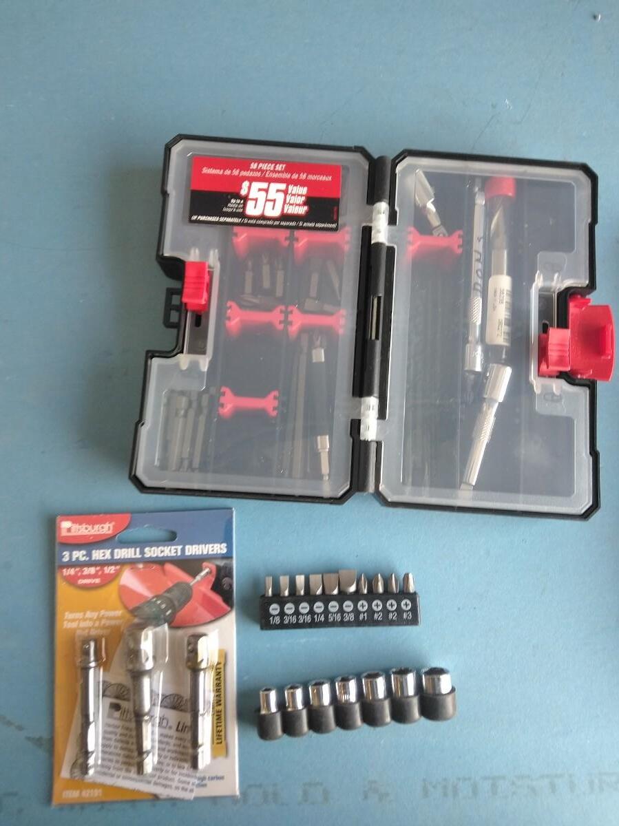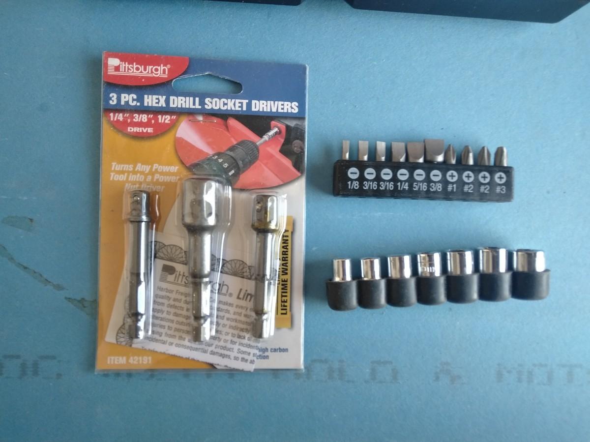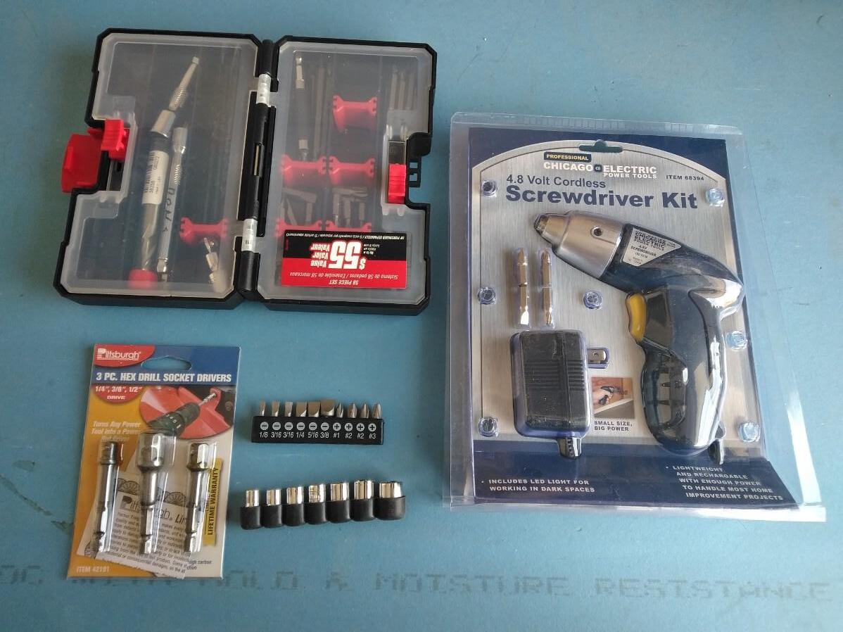 NEW CHICAGO ELECTRIC SCREWDRIVER KIT, WITH EXTRA BITS AND ACCESSORIES.