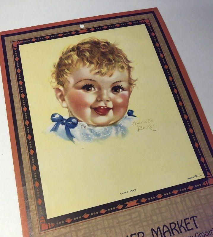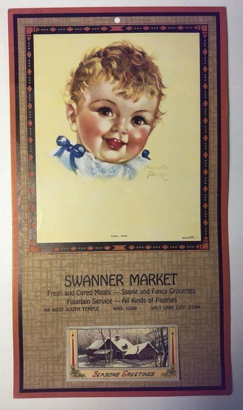 In virtually new condition here is an advertising calendar from 1936 featuring “Curly Head” by Charlotte Becker ( 1907-1984) who was known as an artist, illustrator, and author of children's books...Advertising SWANNER MARKET once of Salt Lake City, Utah.