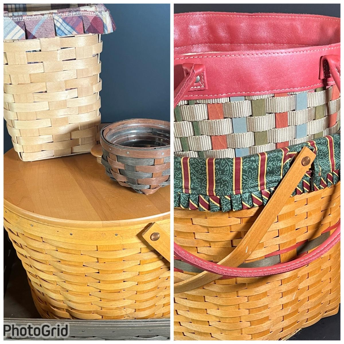LOT 250: Various Longaberger Wicker Baskets & Woven Bags
