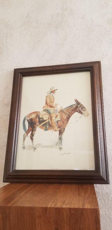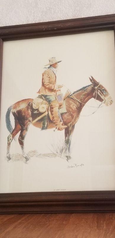 Lot 2-503: Vintage FREDERIC REMINGTON Fine Art Framed Print "An Army Packer" 19" x 15"