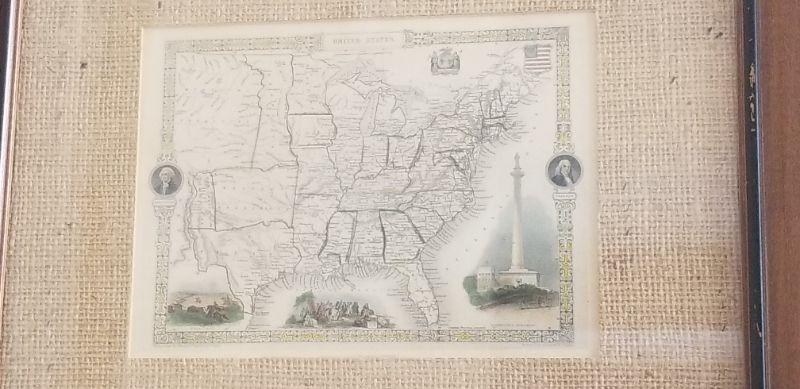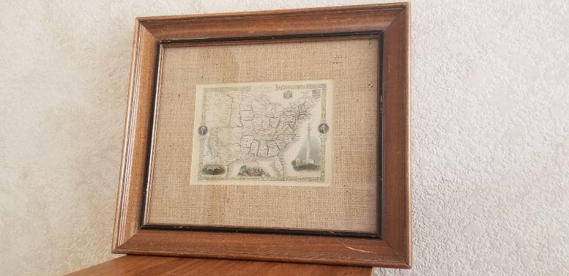 Lot 2-504: Antique/Vintage Map Print of UNITED STATES Framed 14.5" x 12.5"