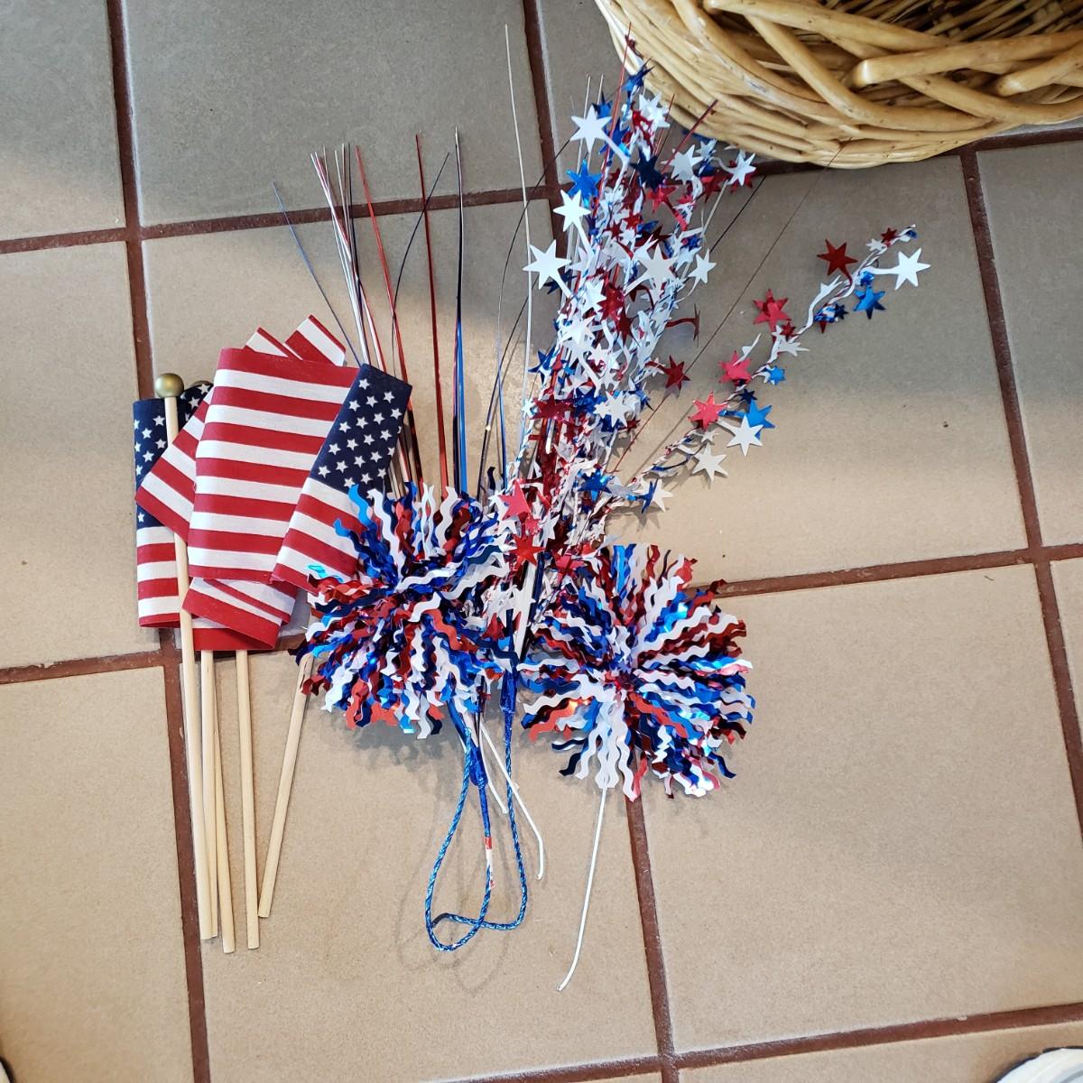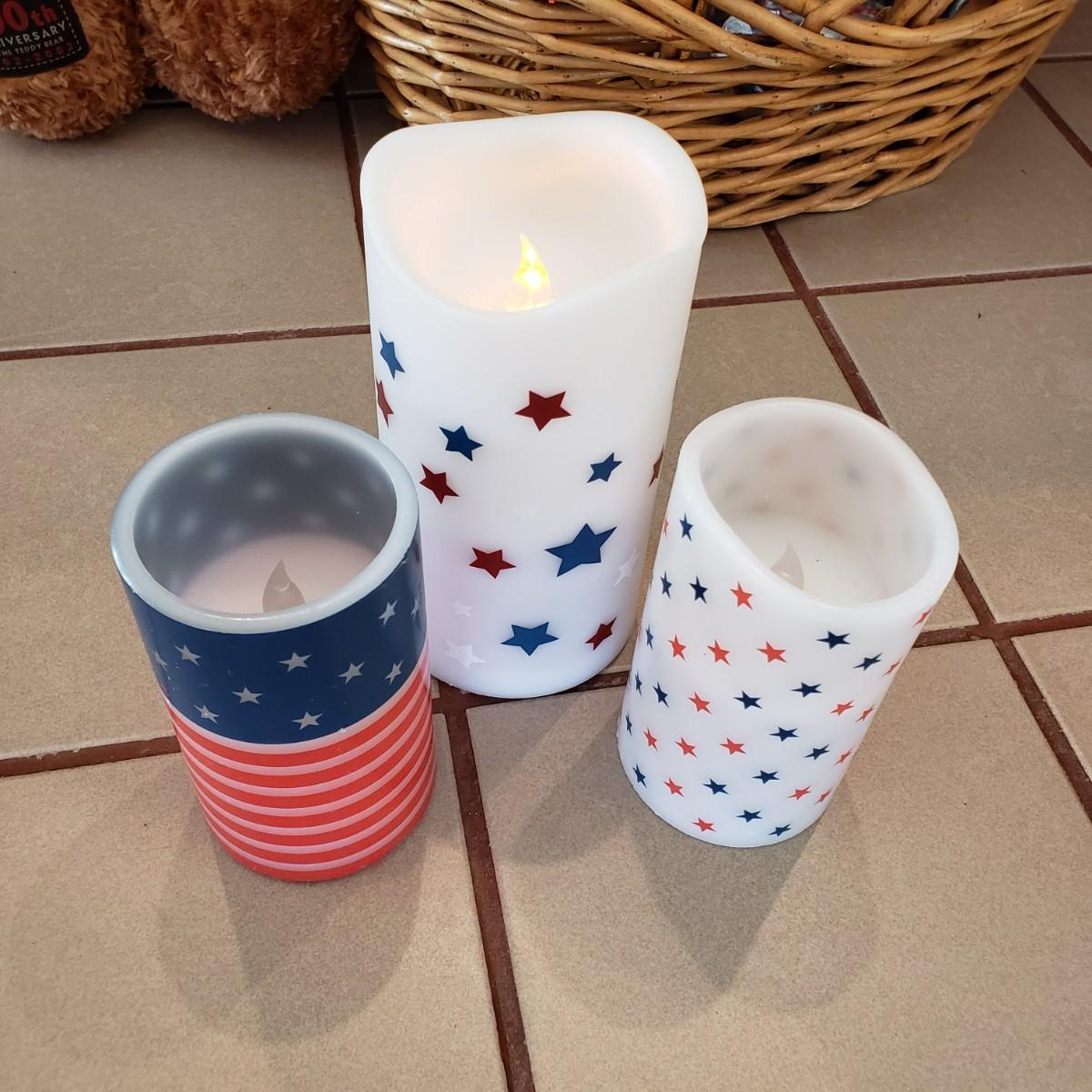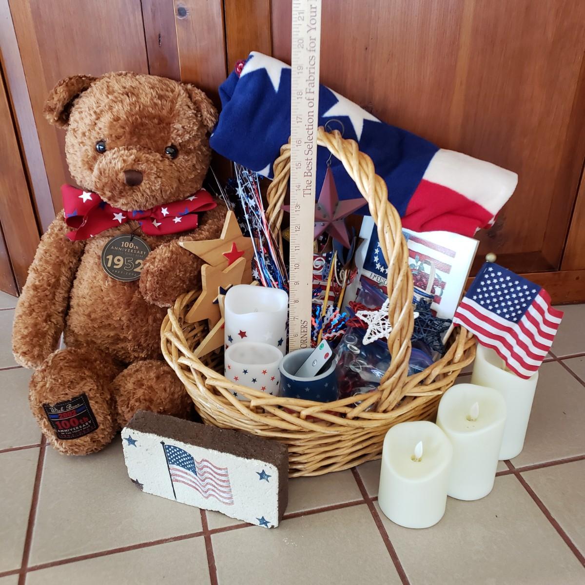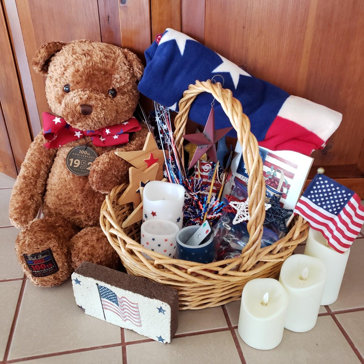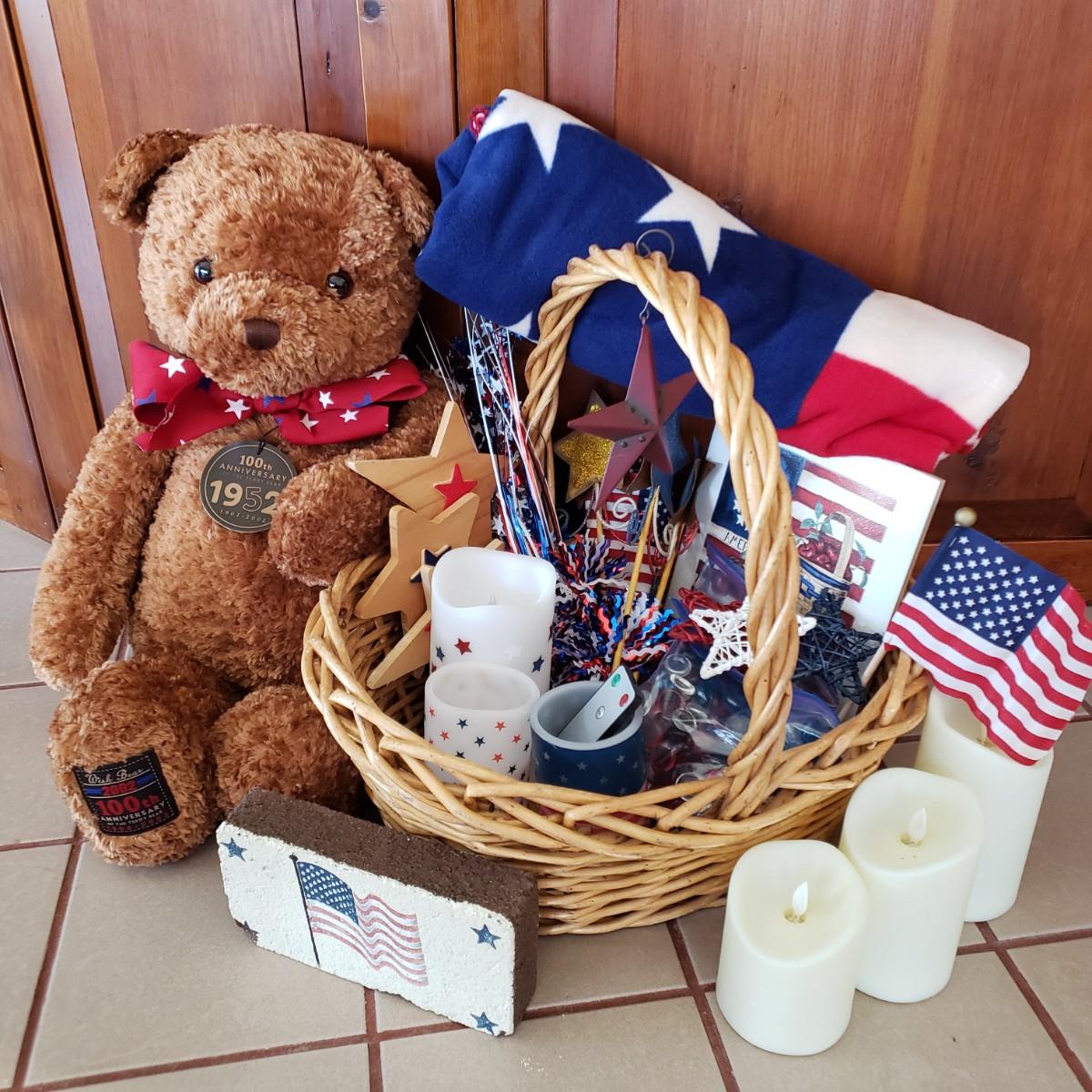 LOT 250F: Red White and Blue Decor; Candles, Gund Bear, Blanket, and So Much More