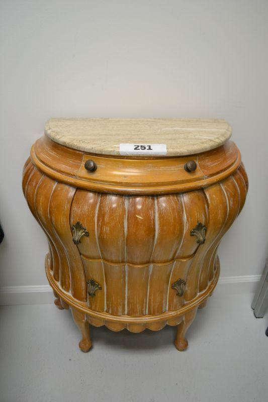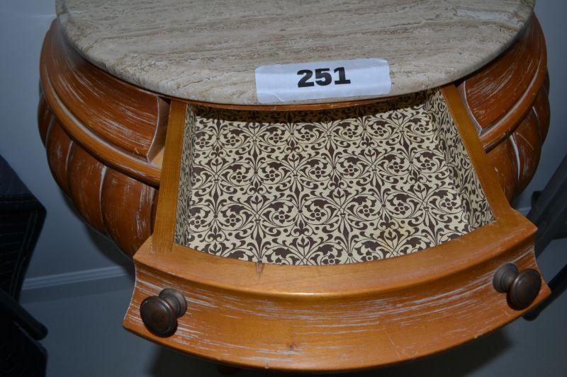 LOT 251 WOOD NIGHT STAND WITH MARBLE TOP