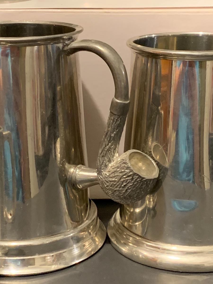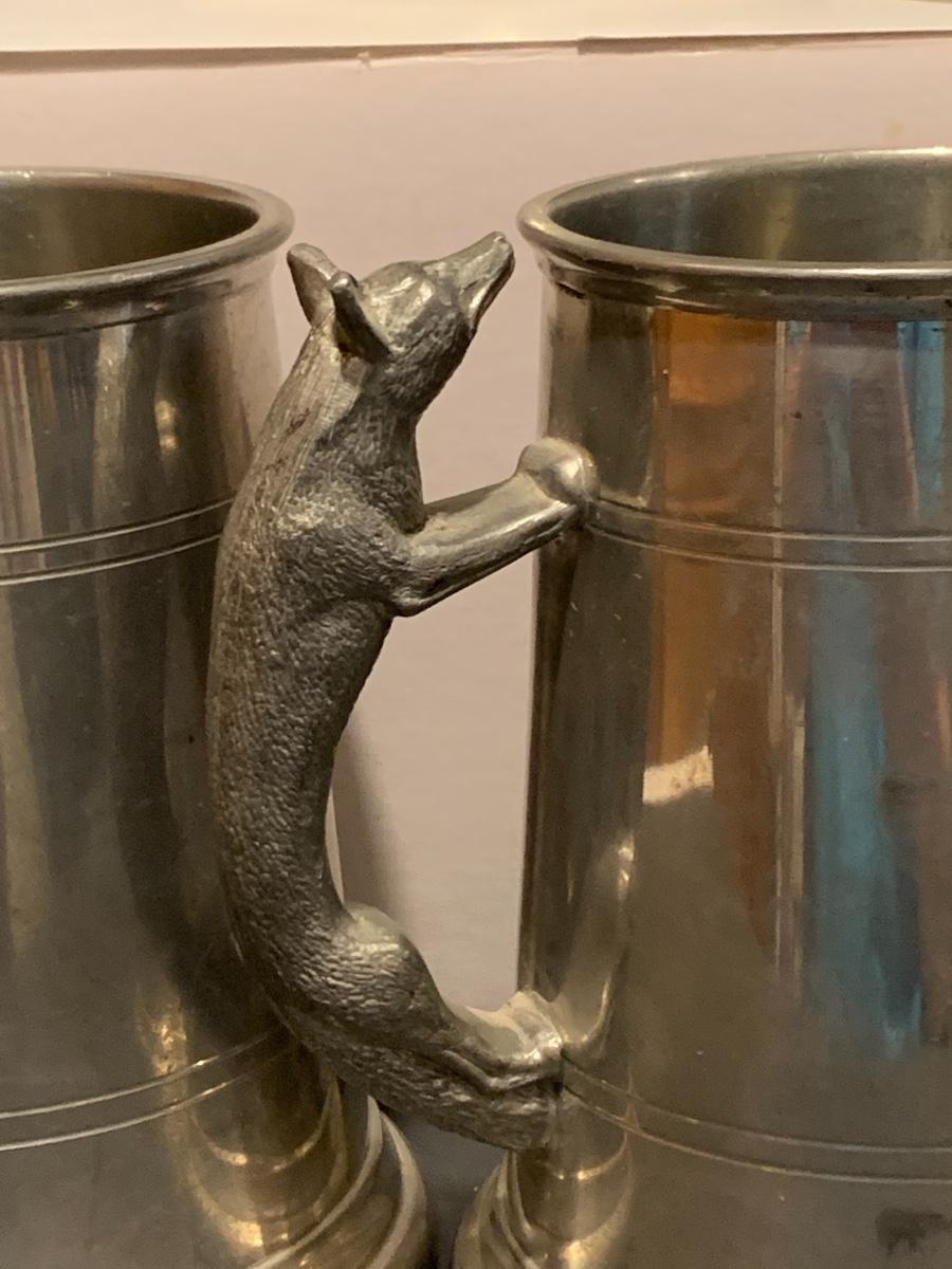 Lot 251: Vintage Sheffield Unique Handles Pewter Mugs (Golf, Fox, Fish, Pipe etc)