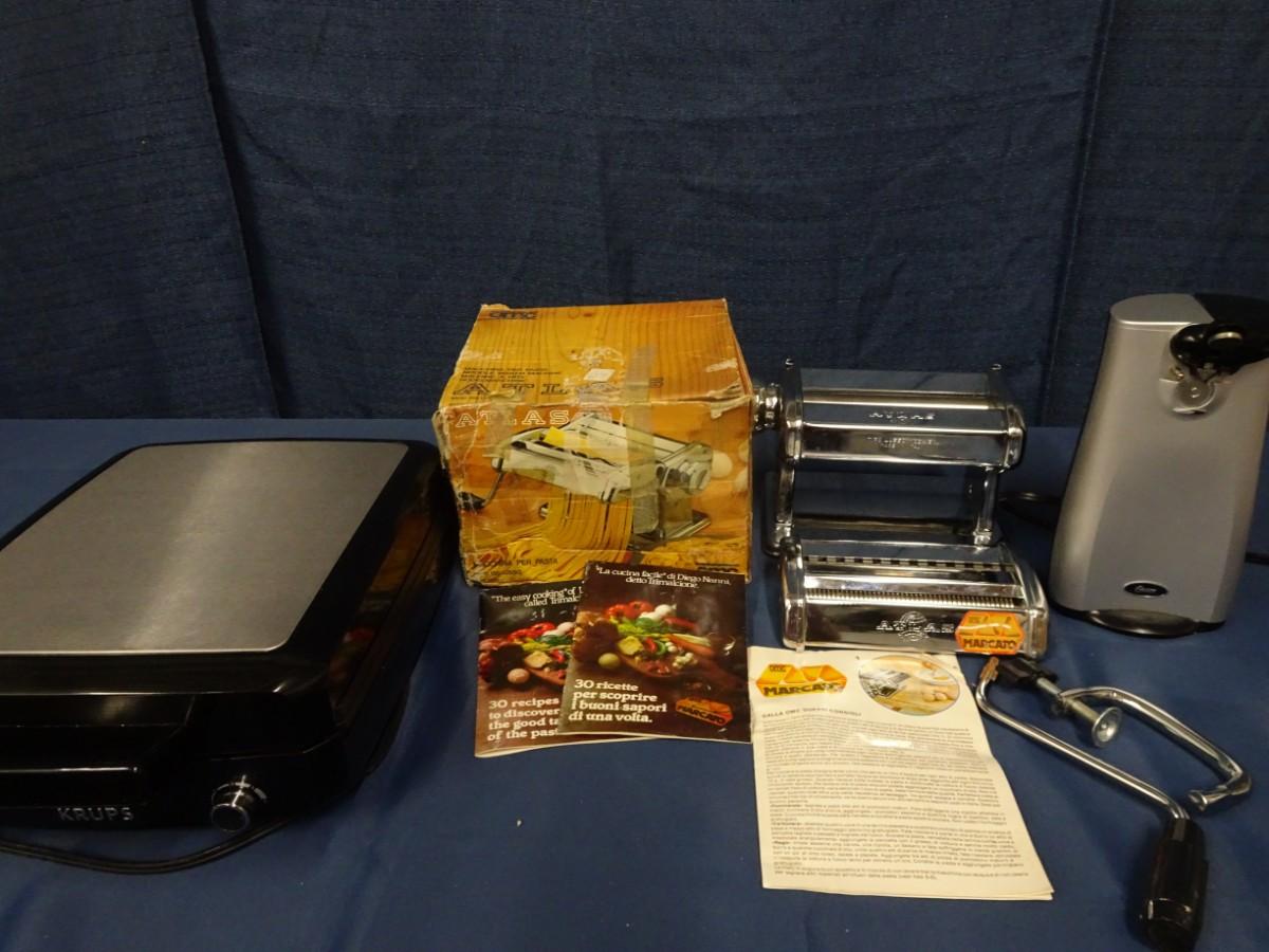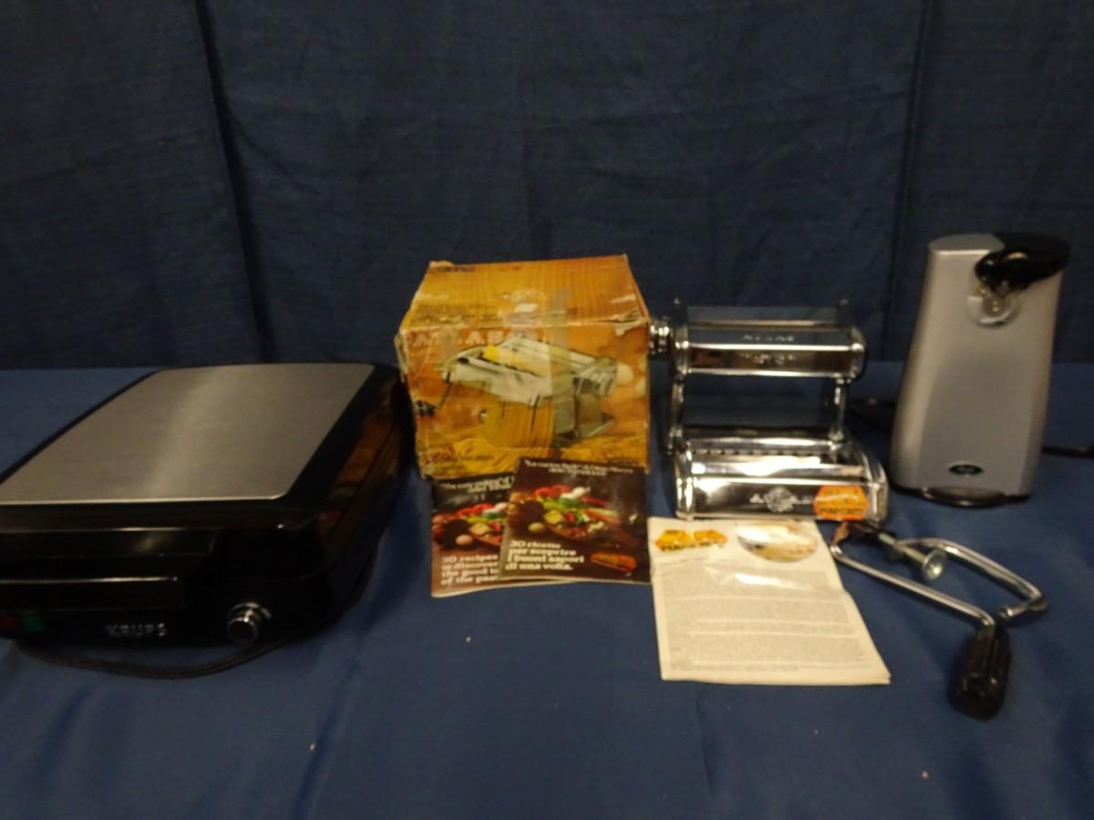 KRUPS WAFFLE IRON, PASTA MACHINE AND CAN OPENER
