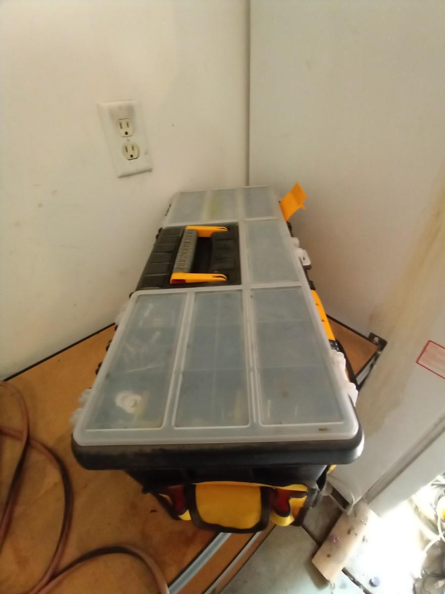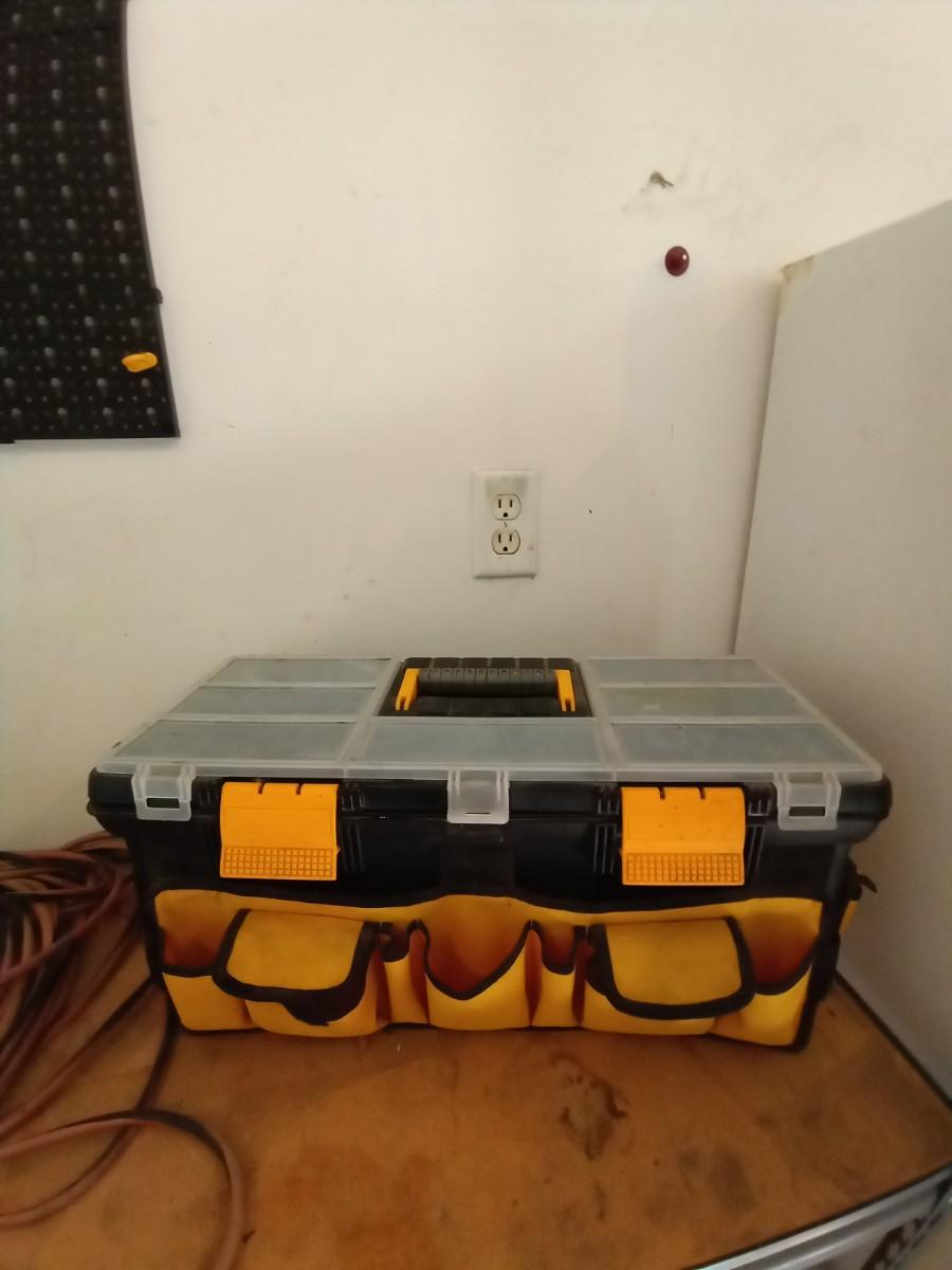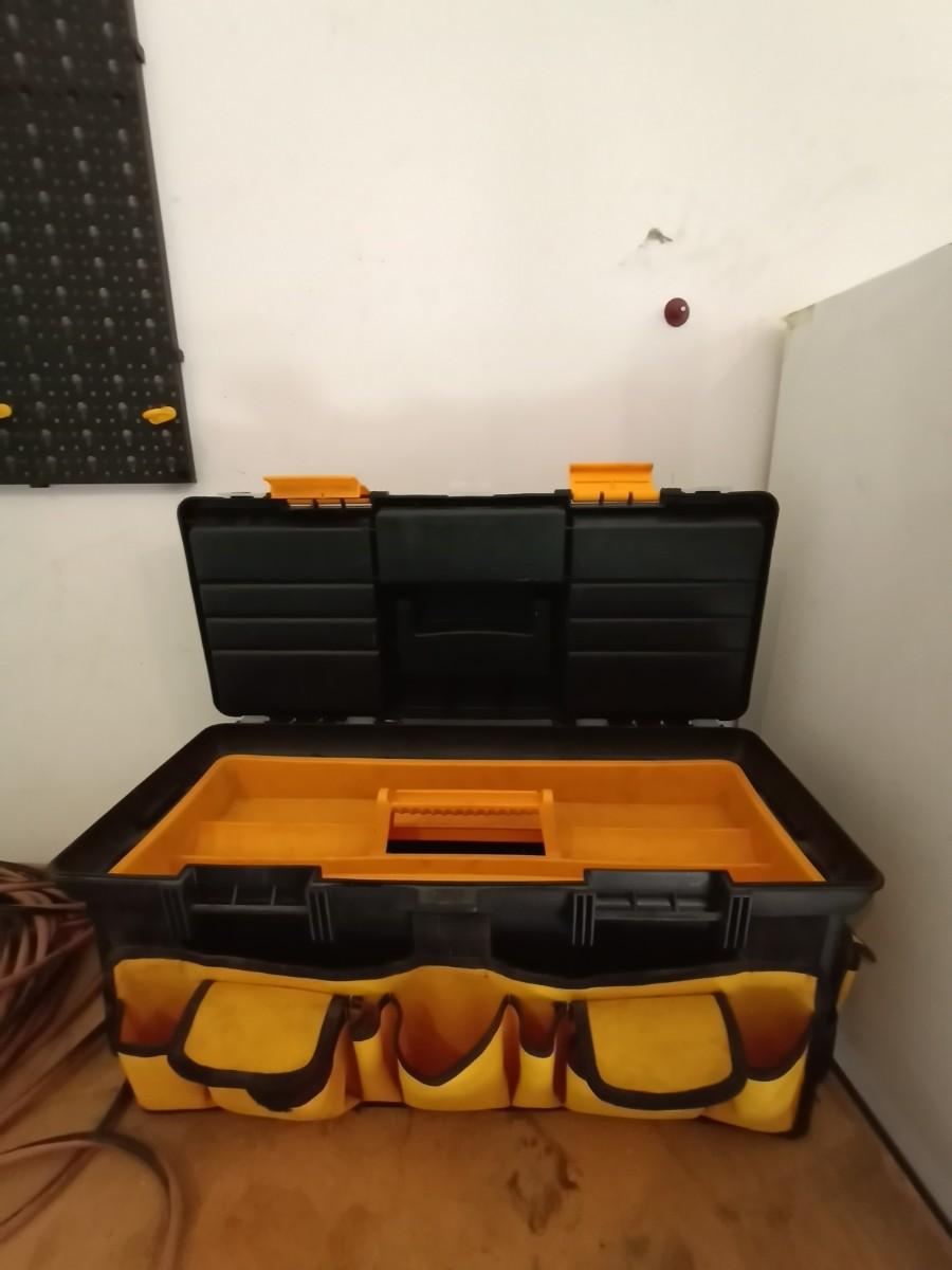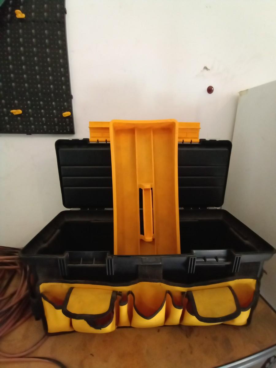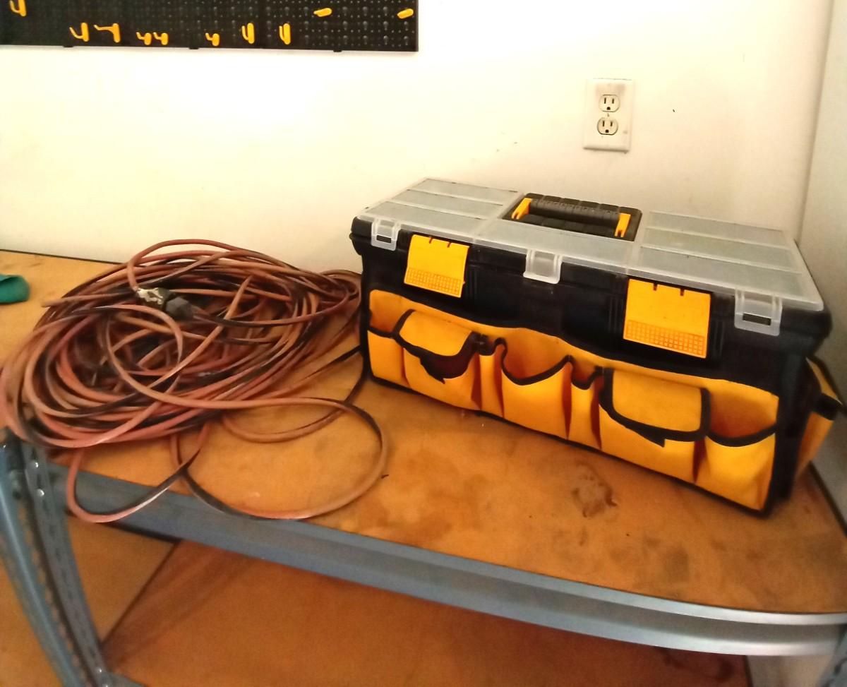 PLASTIC TOOLBOX WITH TRAY AND EXTENTION CORD