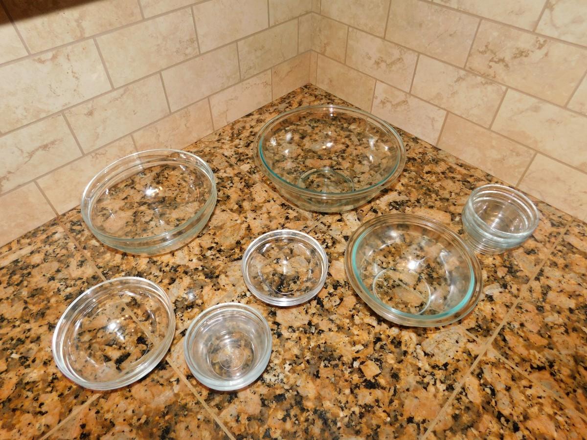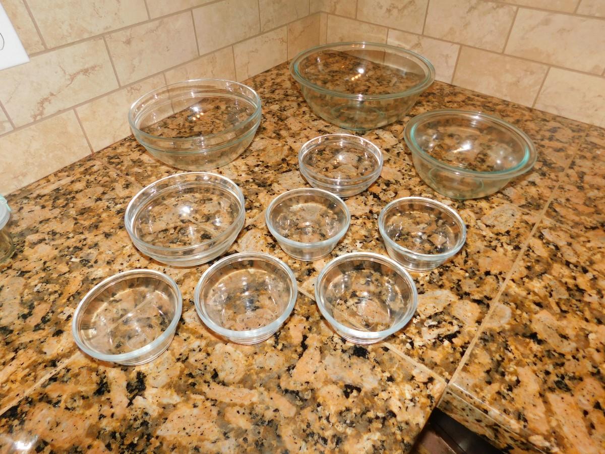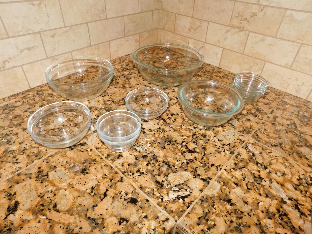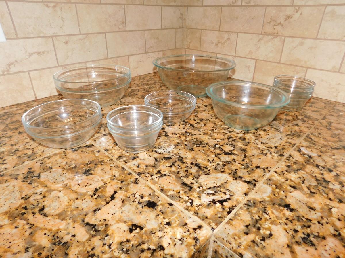 GLASS NESTING BOWLS AND SMALLER LIKE BOWLS