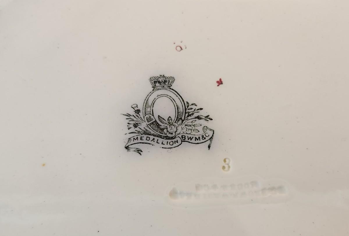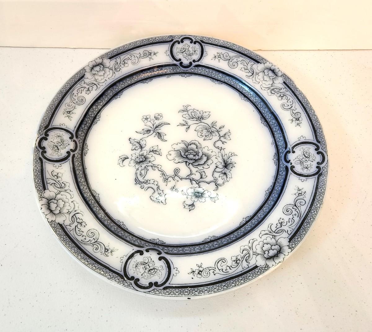 Antique 19th century Blue/White English transferware plate - floral motif. Good antique condition. 13" across. Pattern is called "Medallion."
