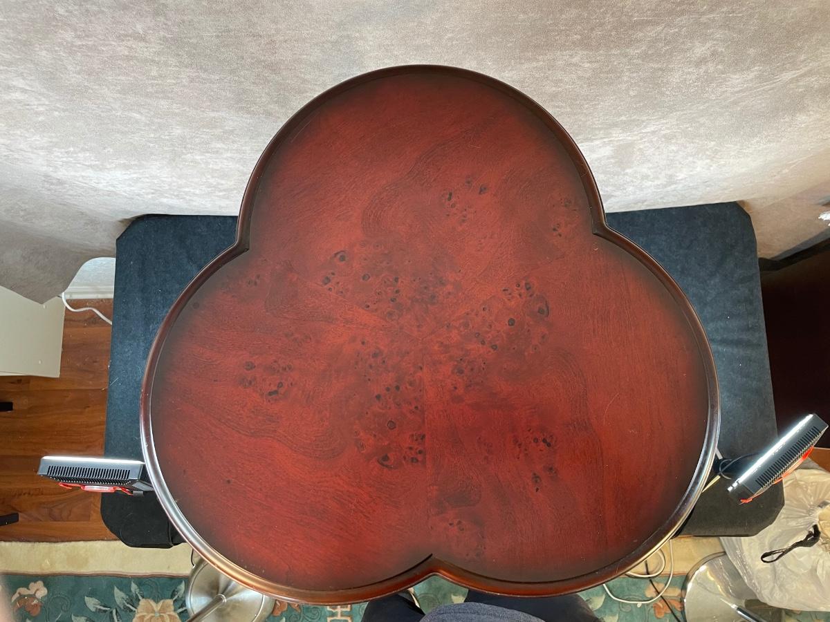 Cherry finish Scalloped edge. 18" x 18" x 26" high