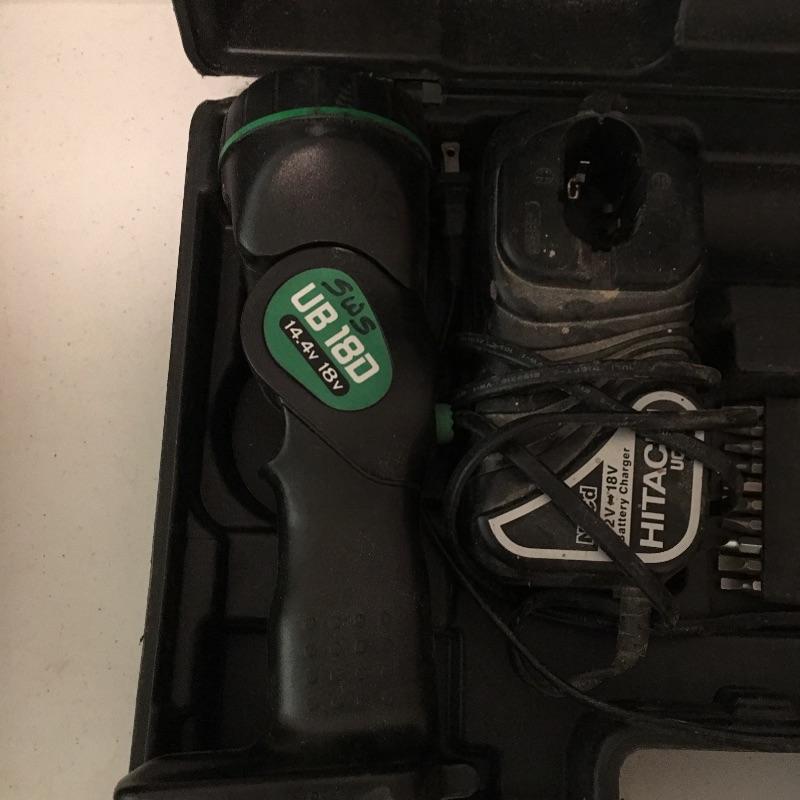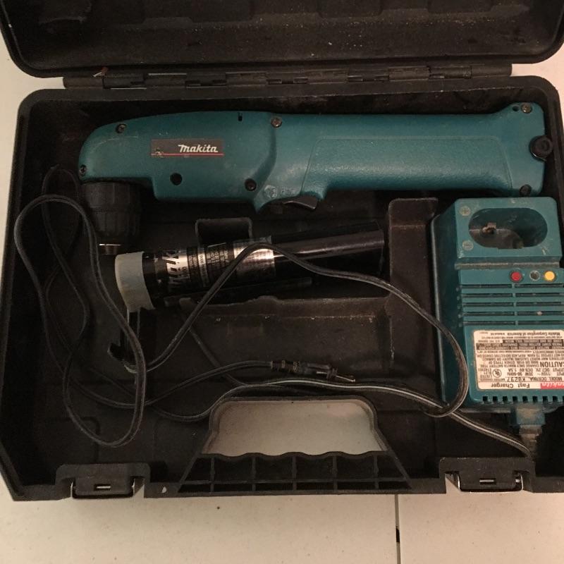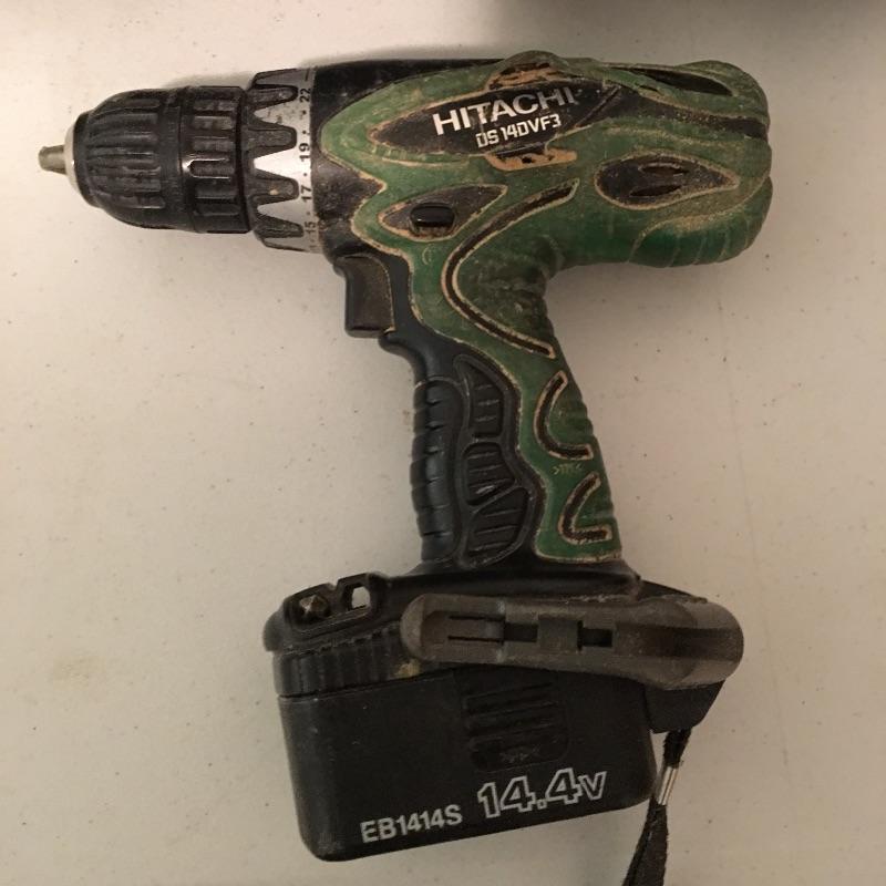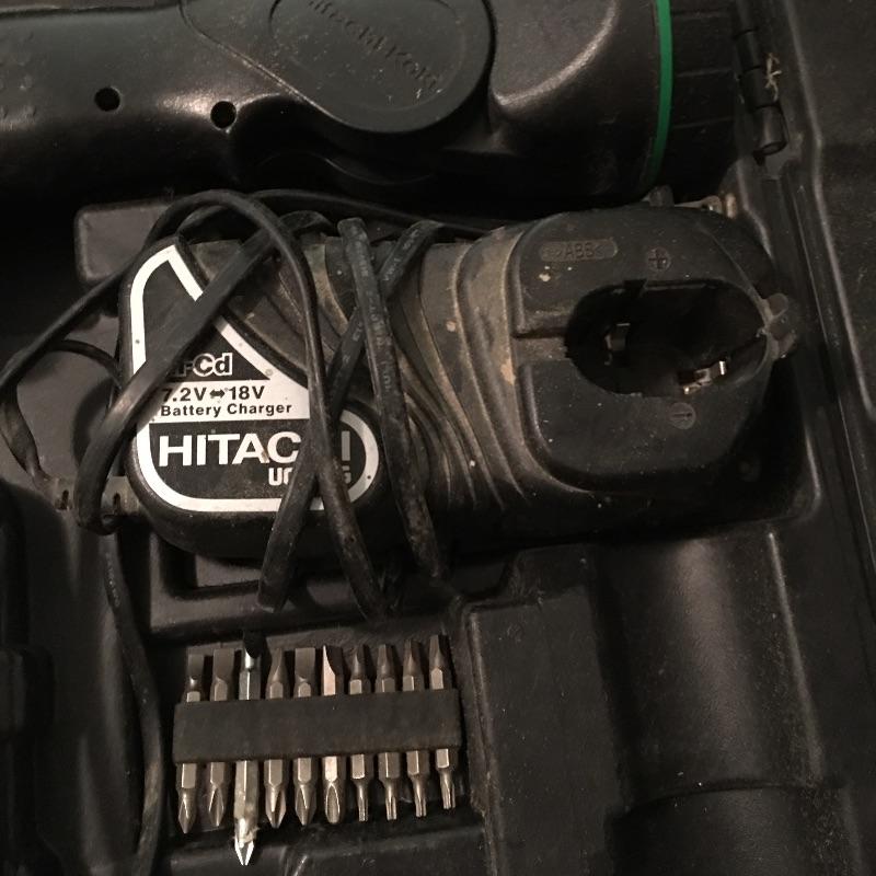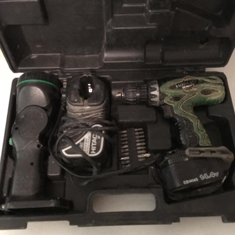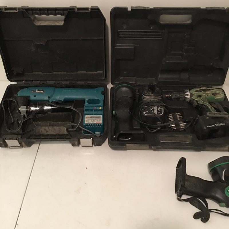 Makita model # DA 391D cordless drill with charger and two batteries and Hitachi model # DS14DVF3 cordless drill with charger one battery and two lights.