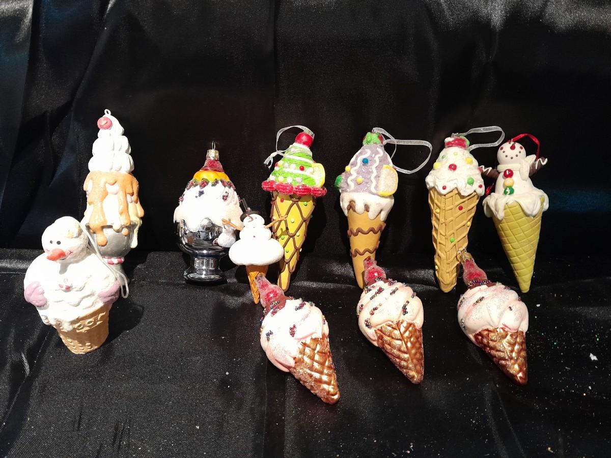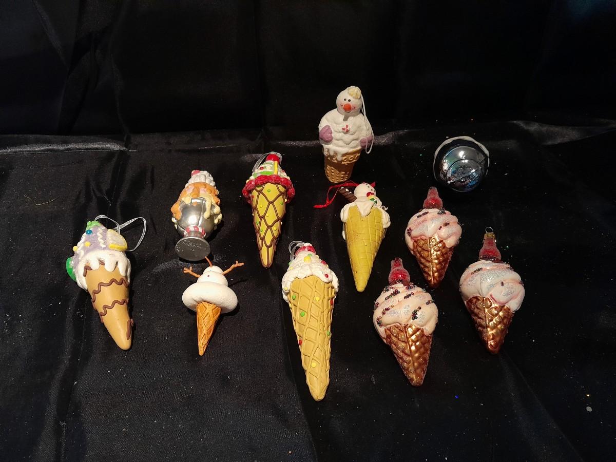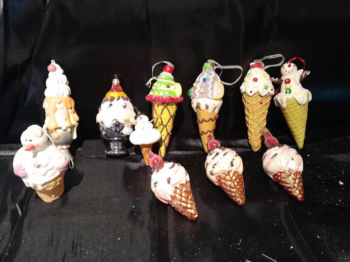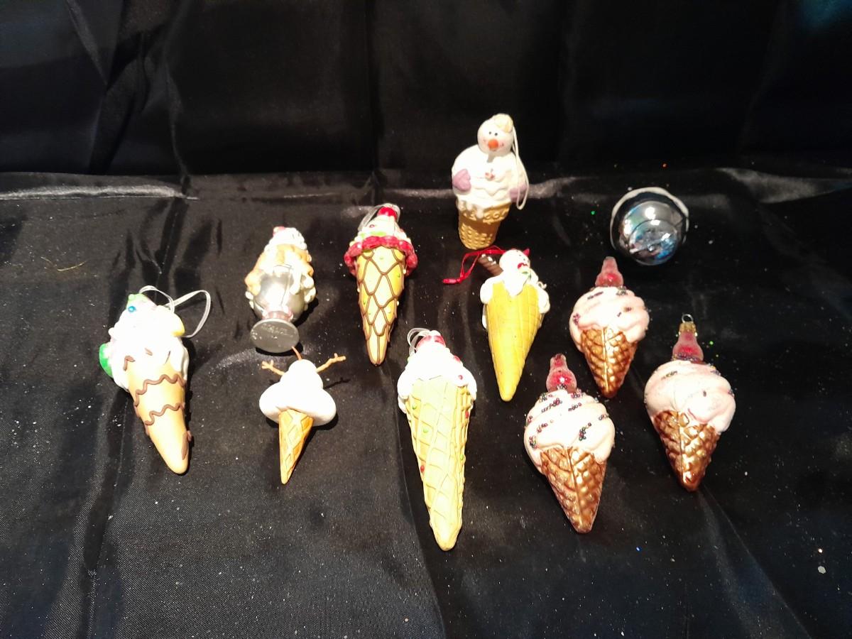 LOT 251 ICE CREAM CONE CHRISTMAS ORNAMENTS