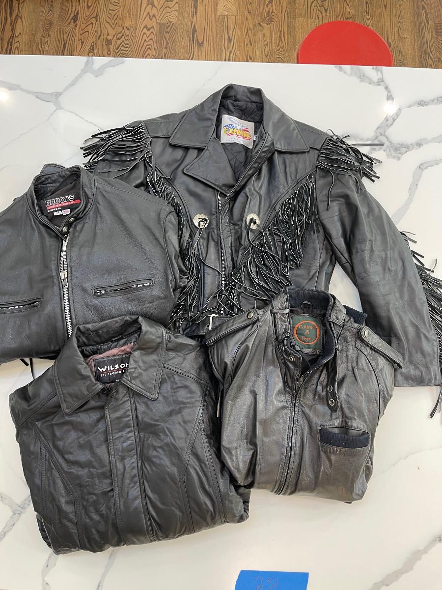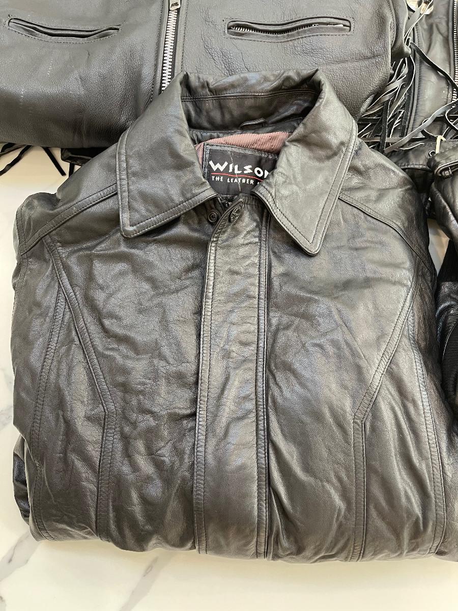 Assortment of Leather Coats From Wilsons, Brooks, Excelled and Coltrell & Hayes in Sizes Small, Medium, 42 & 44.