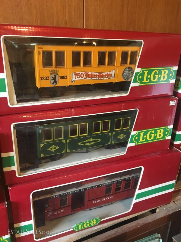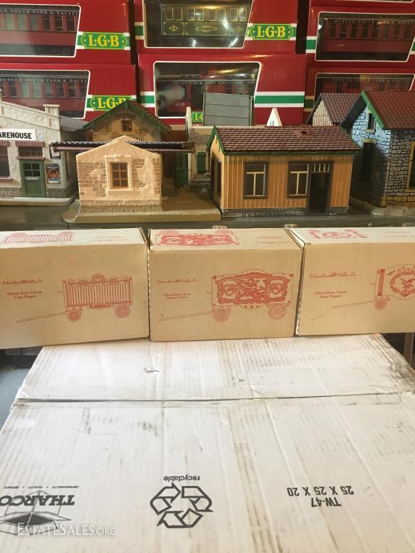 9 passenger cars for the big train set, starting with 3000 models, 7 buildings, 3 LGB 94000 models and 3 Wilson Bros. Circus cars for Columbine Hobby Co., all in good condition. This lot is available for shipping or local pick up in Hendersonville, NC.