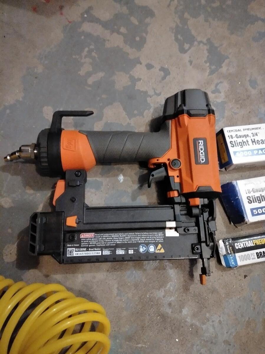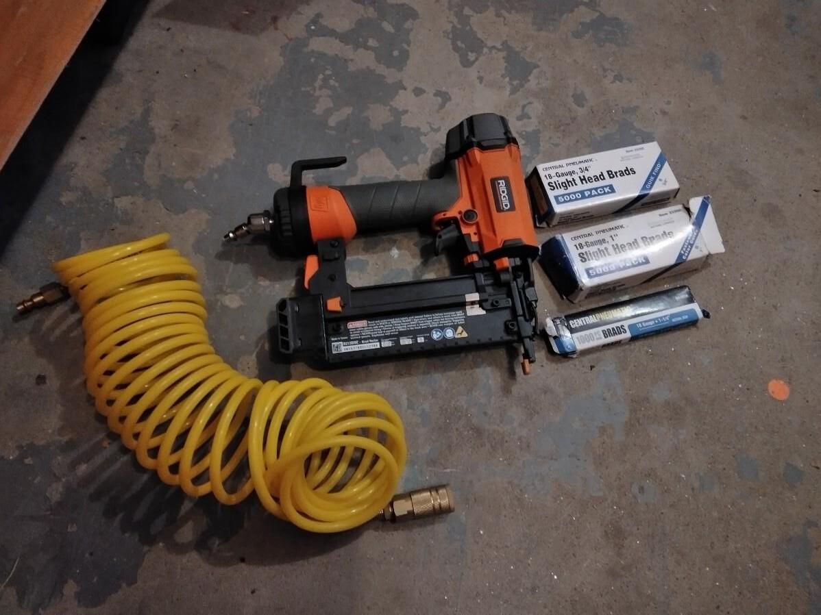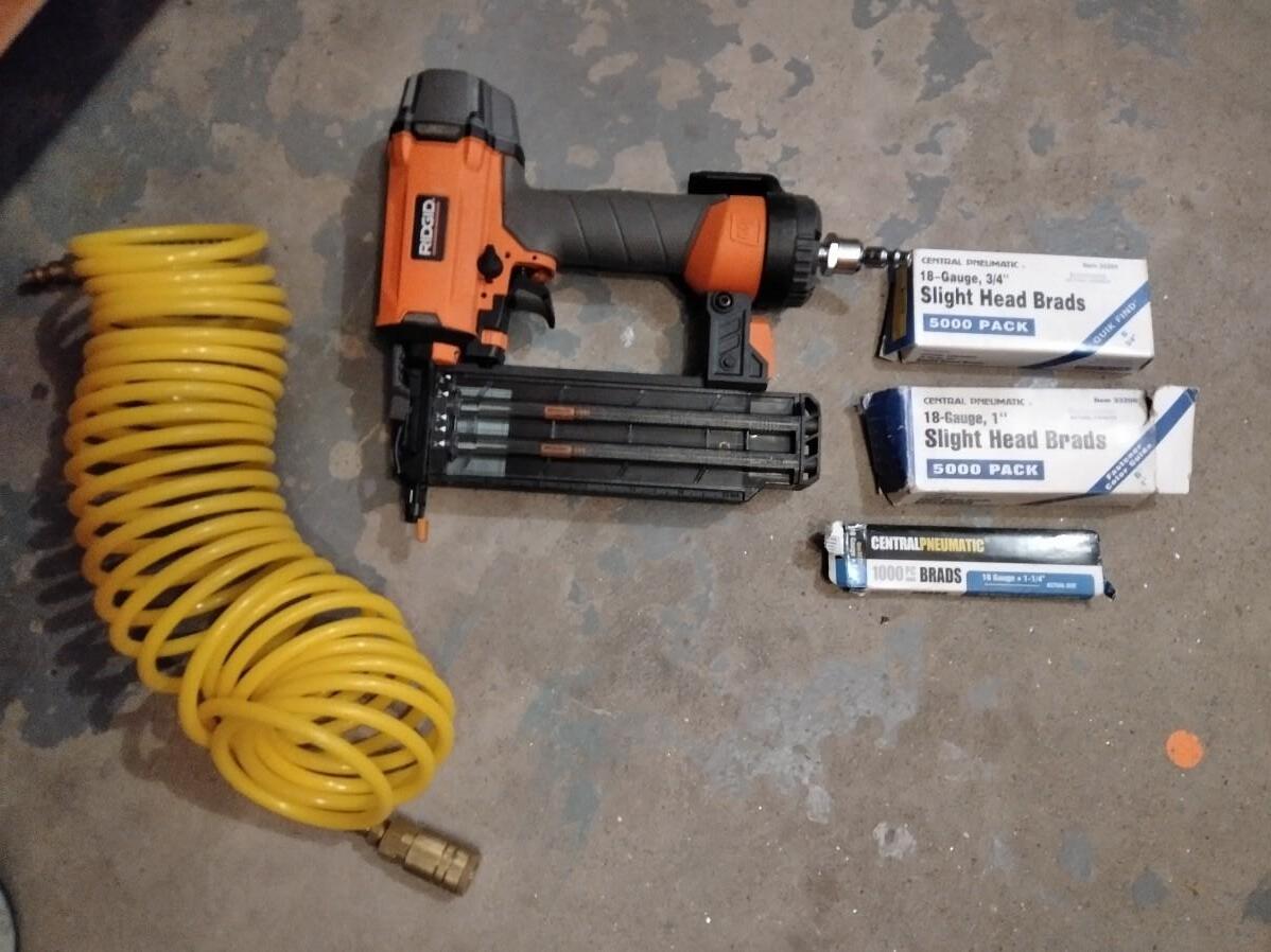 RIGID PNEUMATIC NAILER WITH AIR HOSE AND BRADS