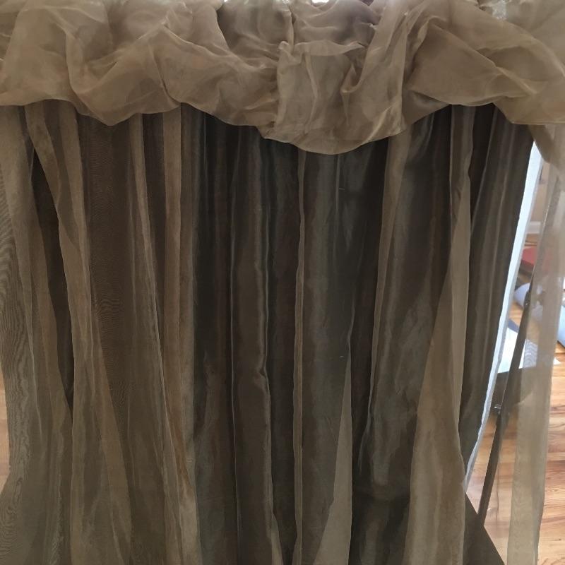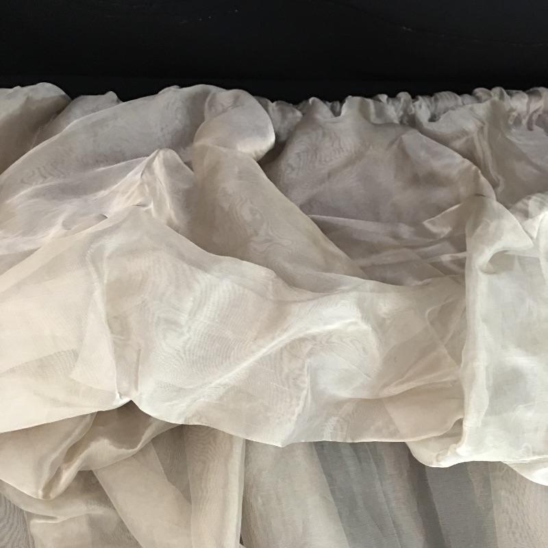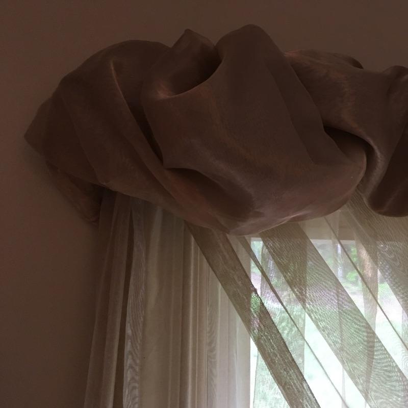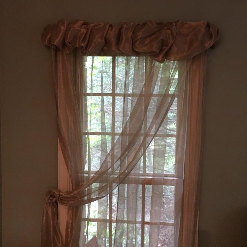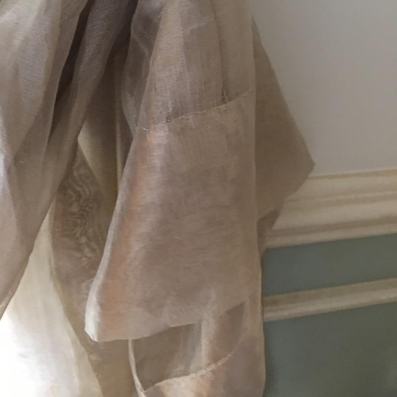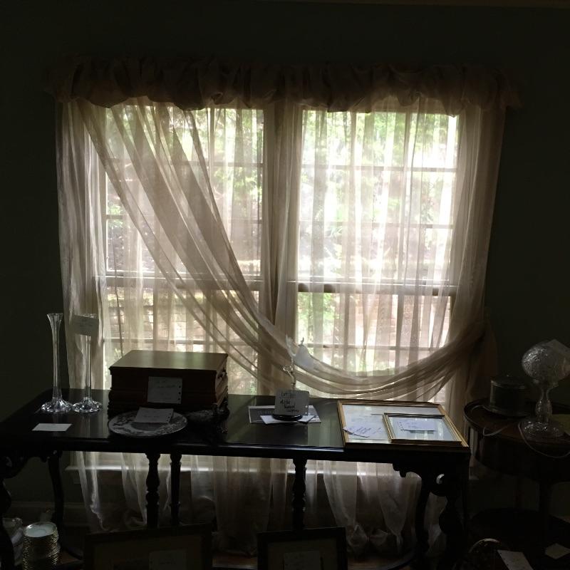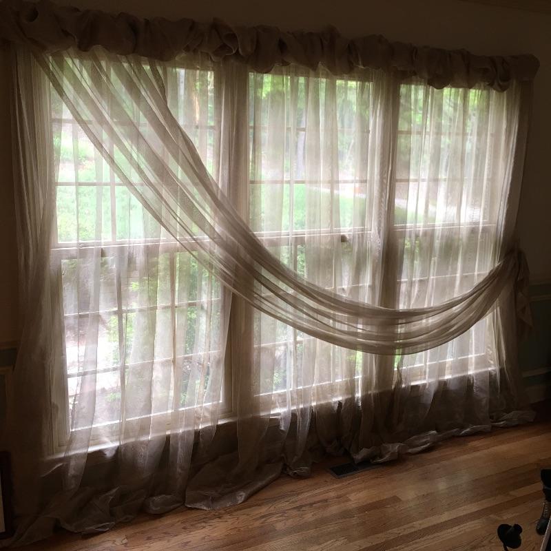Sheer delight with these curtains that will let in the light but keep out the eyes of the nosy neighbors. These sheer curtains consist of two single, one double and one triple with each section measuring 99” x 104”. All curtains are the same ivory like color.