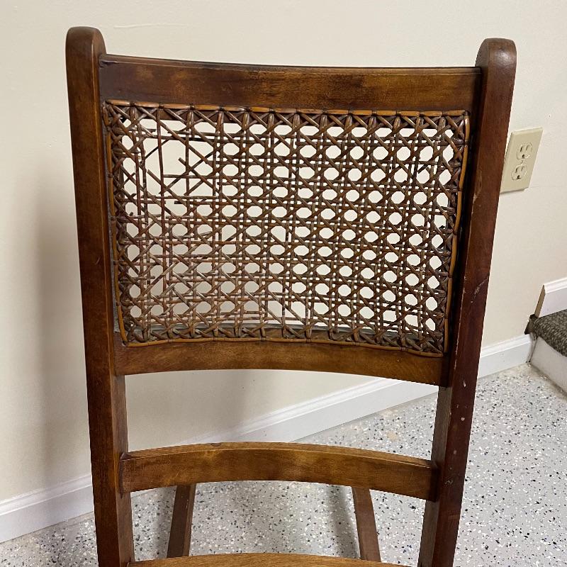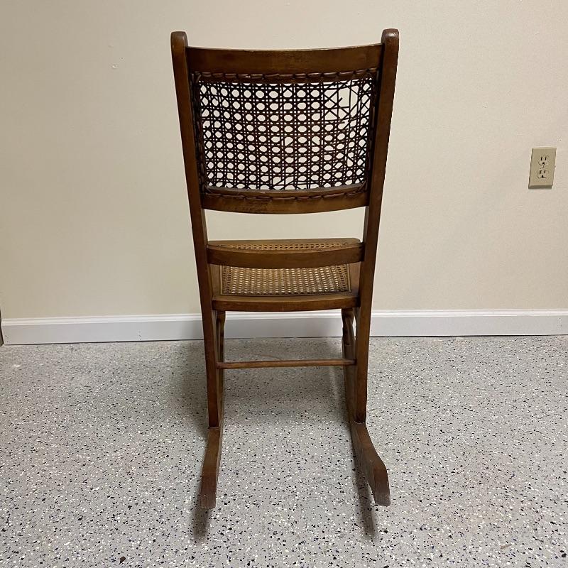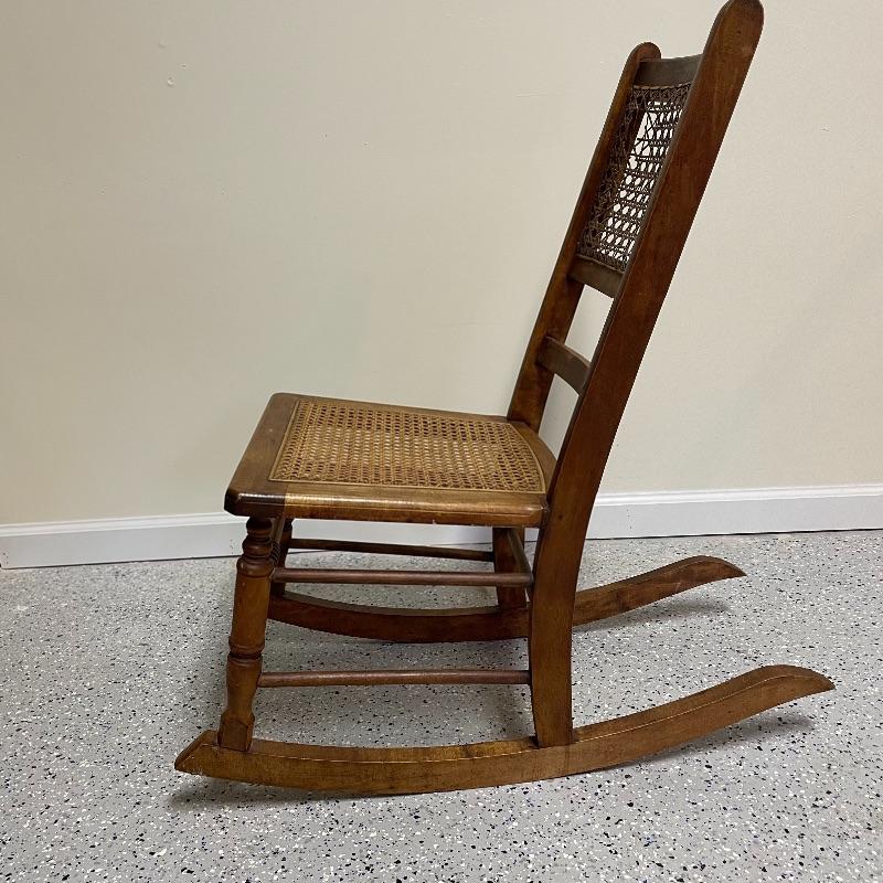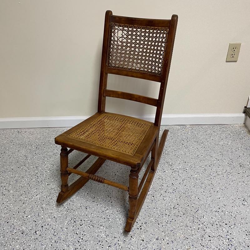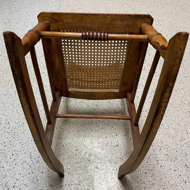 Here’s a great find for the love of petite. This smaller sized can rocker is in great shape with just some small blemishes to the back rest. 16” x 30” x 33.5” with a seat height at 16”. Notice the nice carvings on the legs and support pieces. See images. Local pick up only.