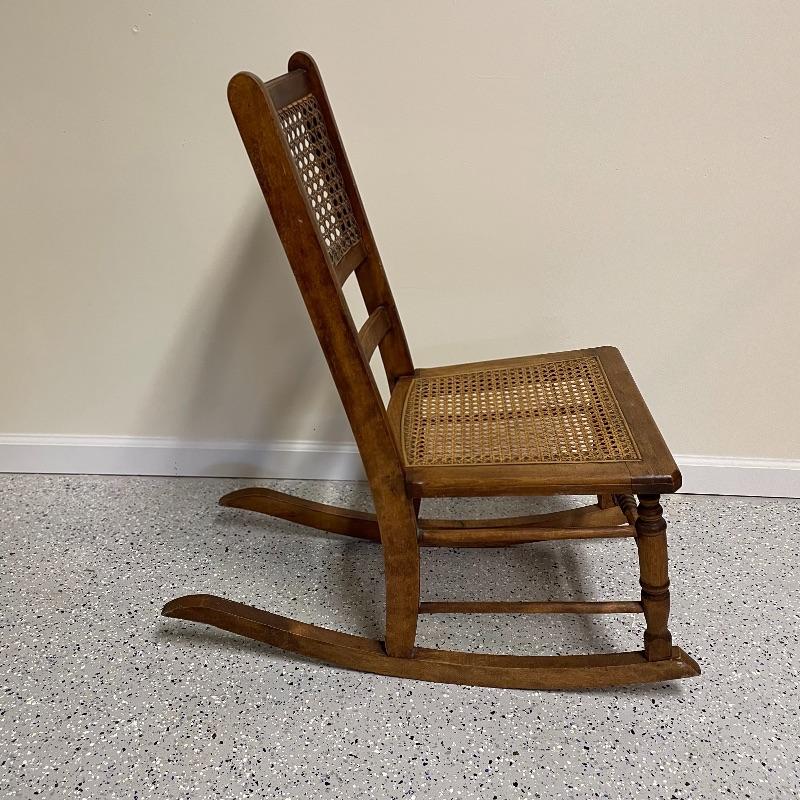 Lot 251 - Small Wooden Rocker w/ Cane Seat & Back