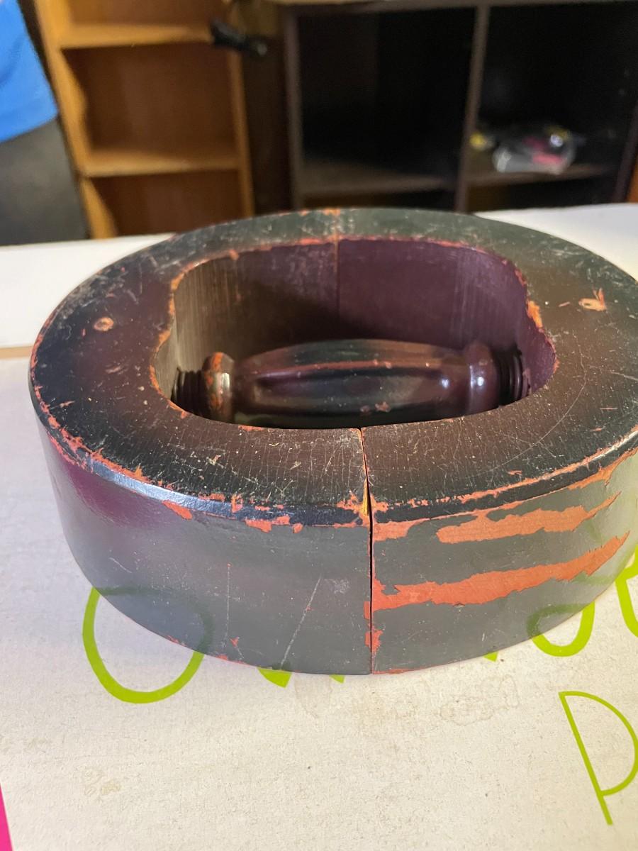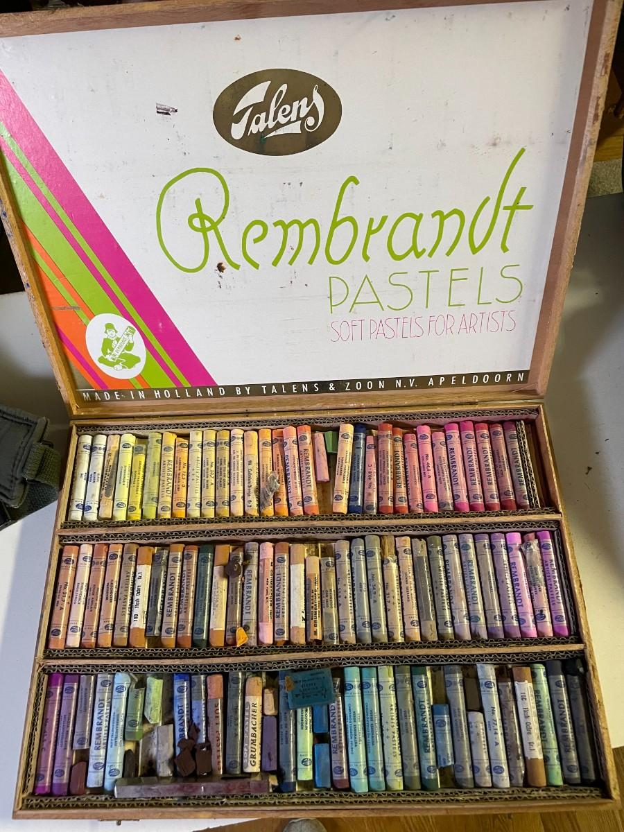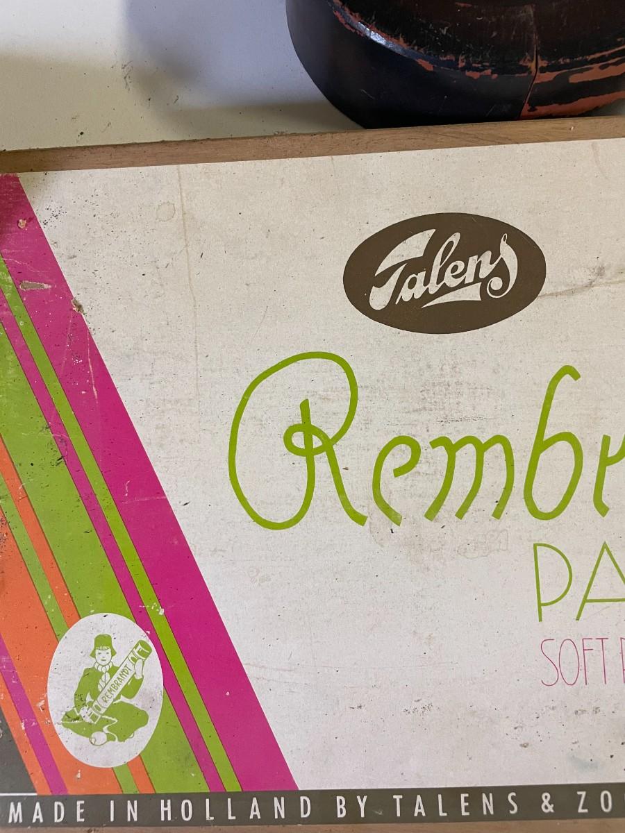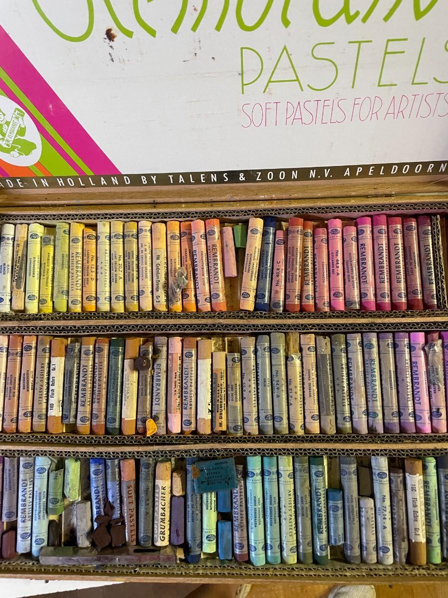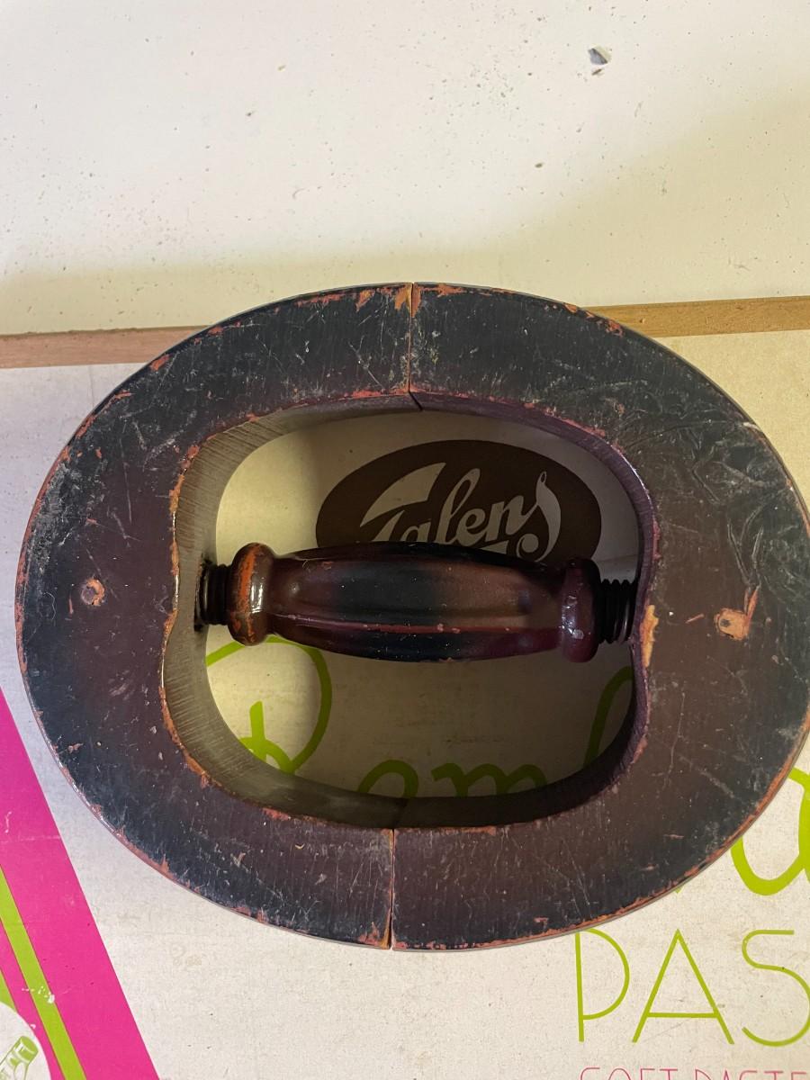 vintage Holland box of pastels, wooden hat stretcher.