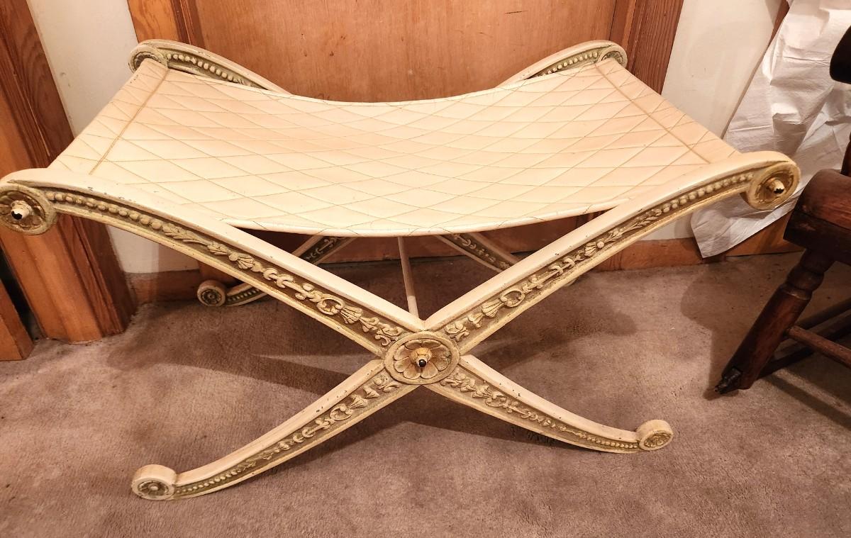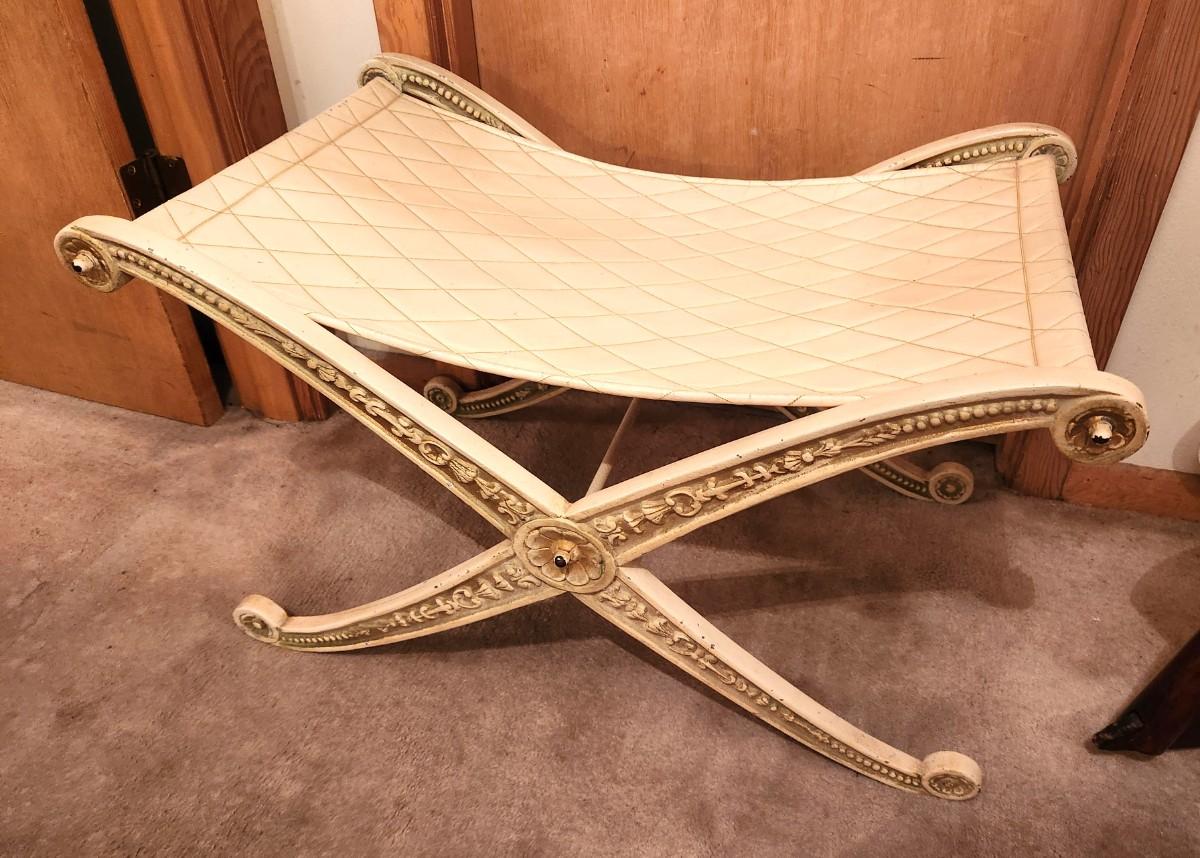 Lot #251 Vintage Hollywood Regency BOHO style Vanity Bench