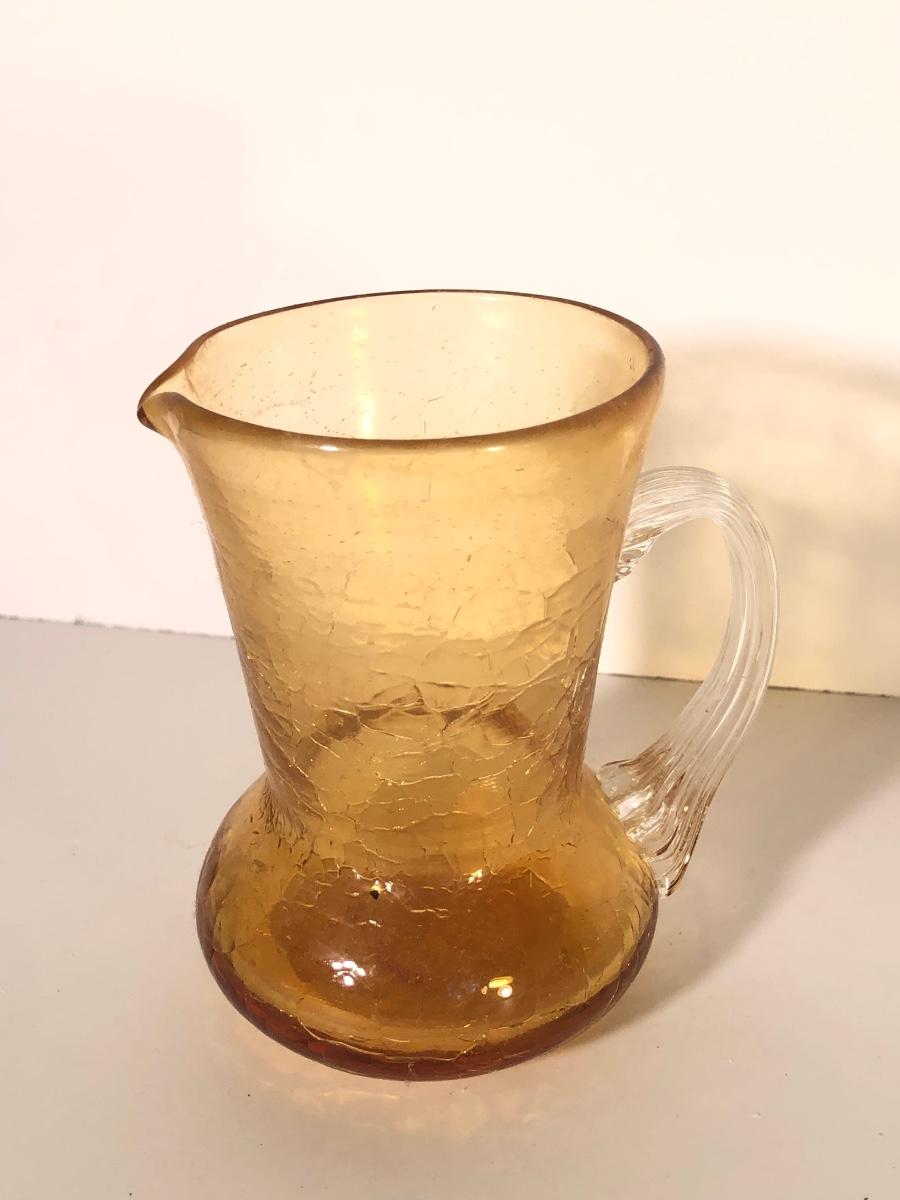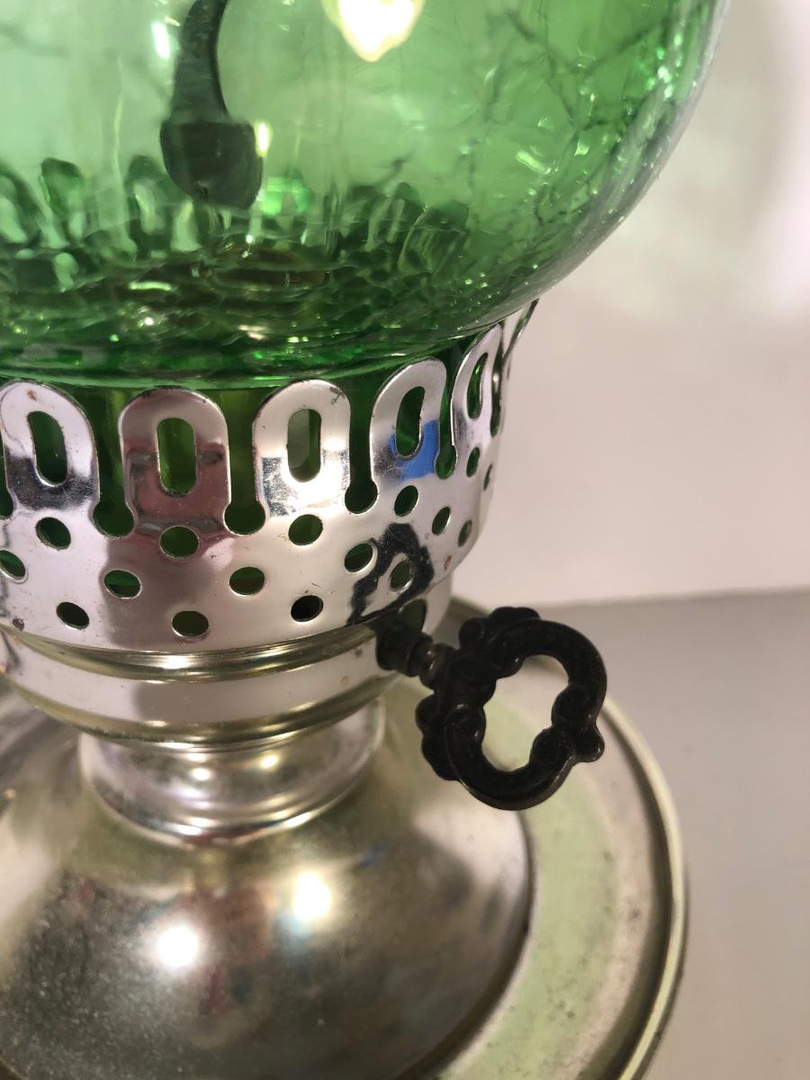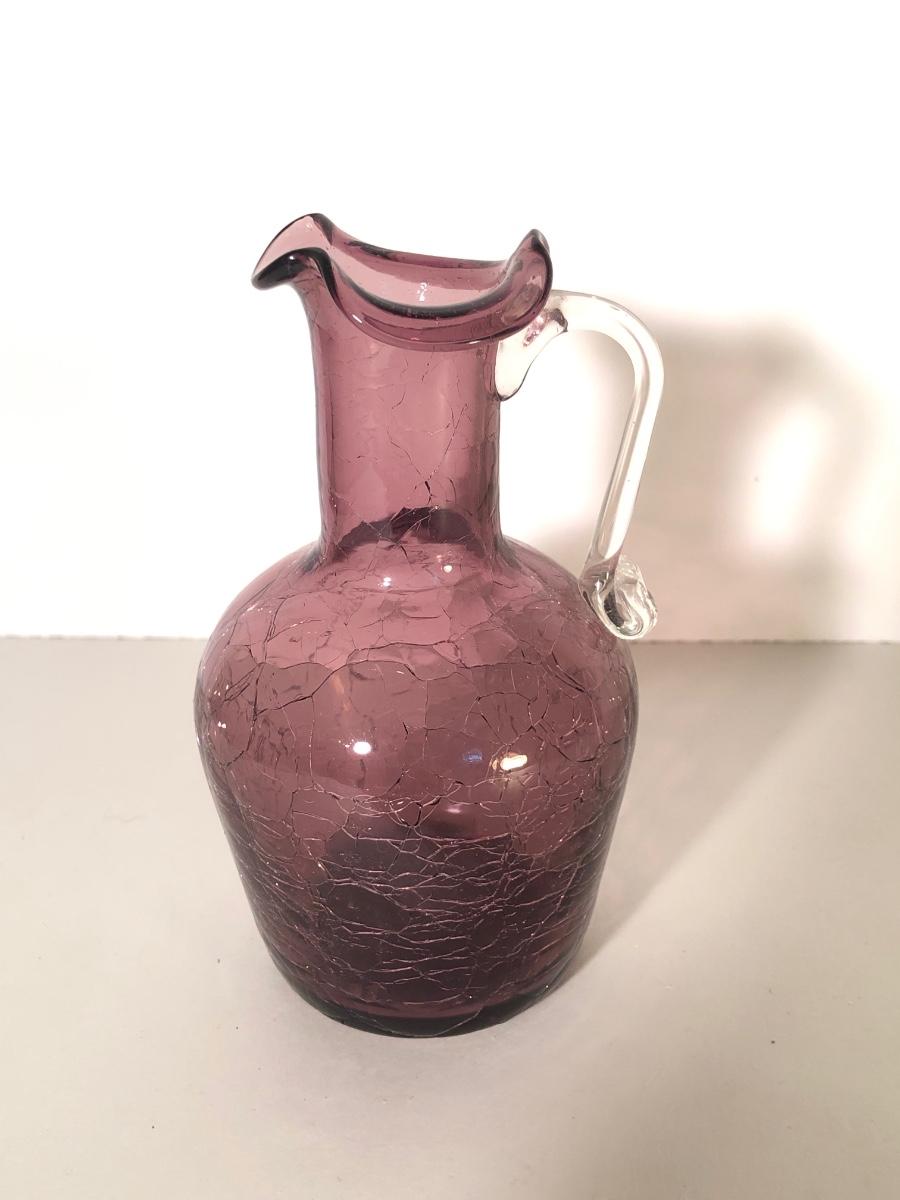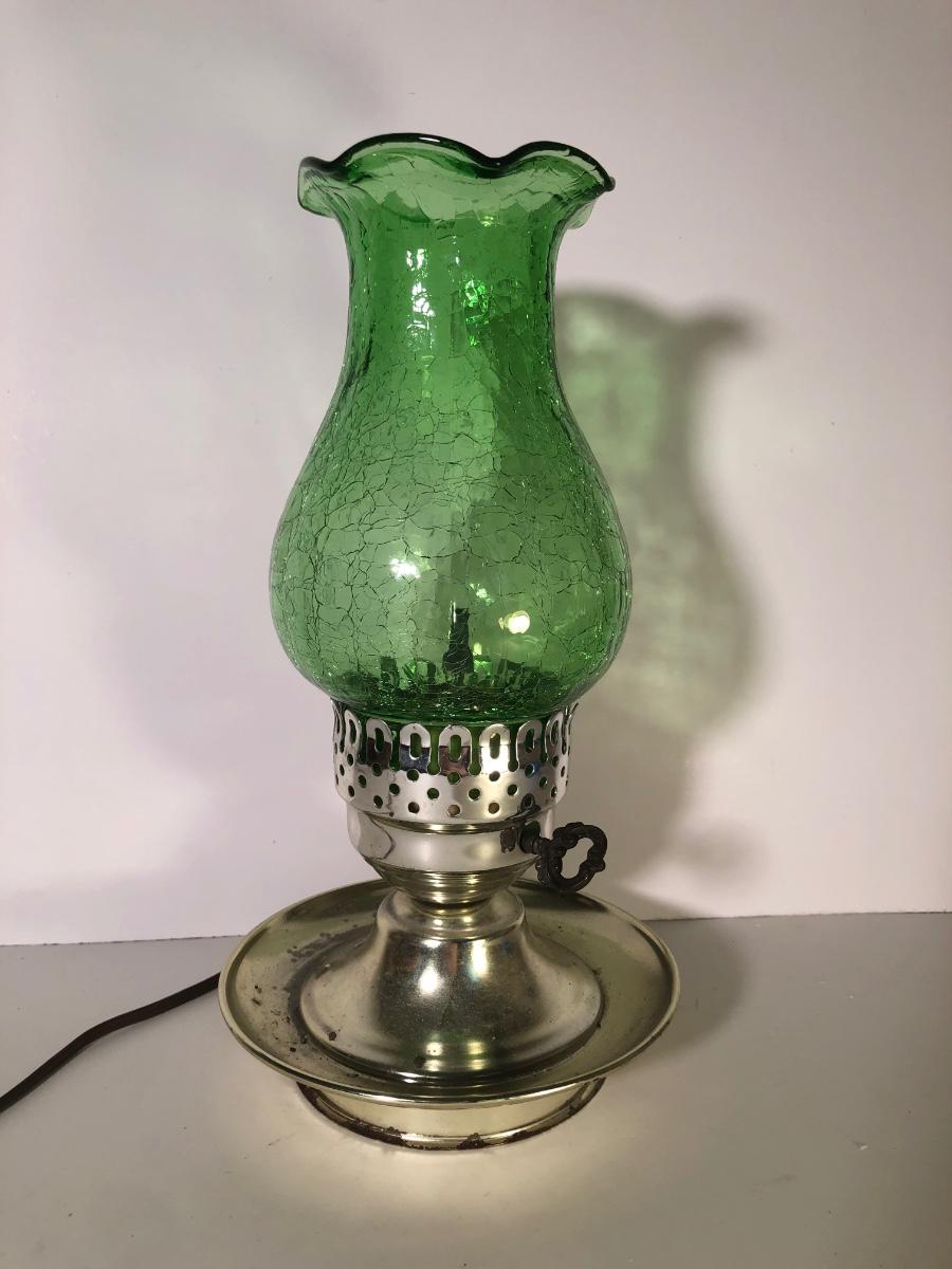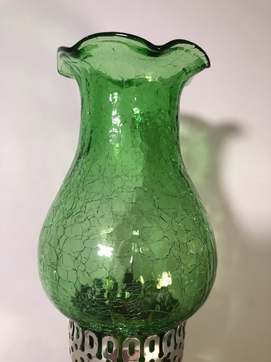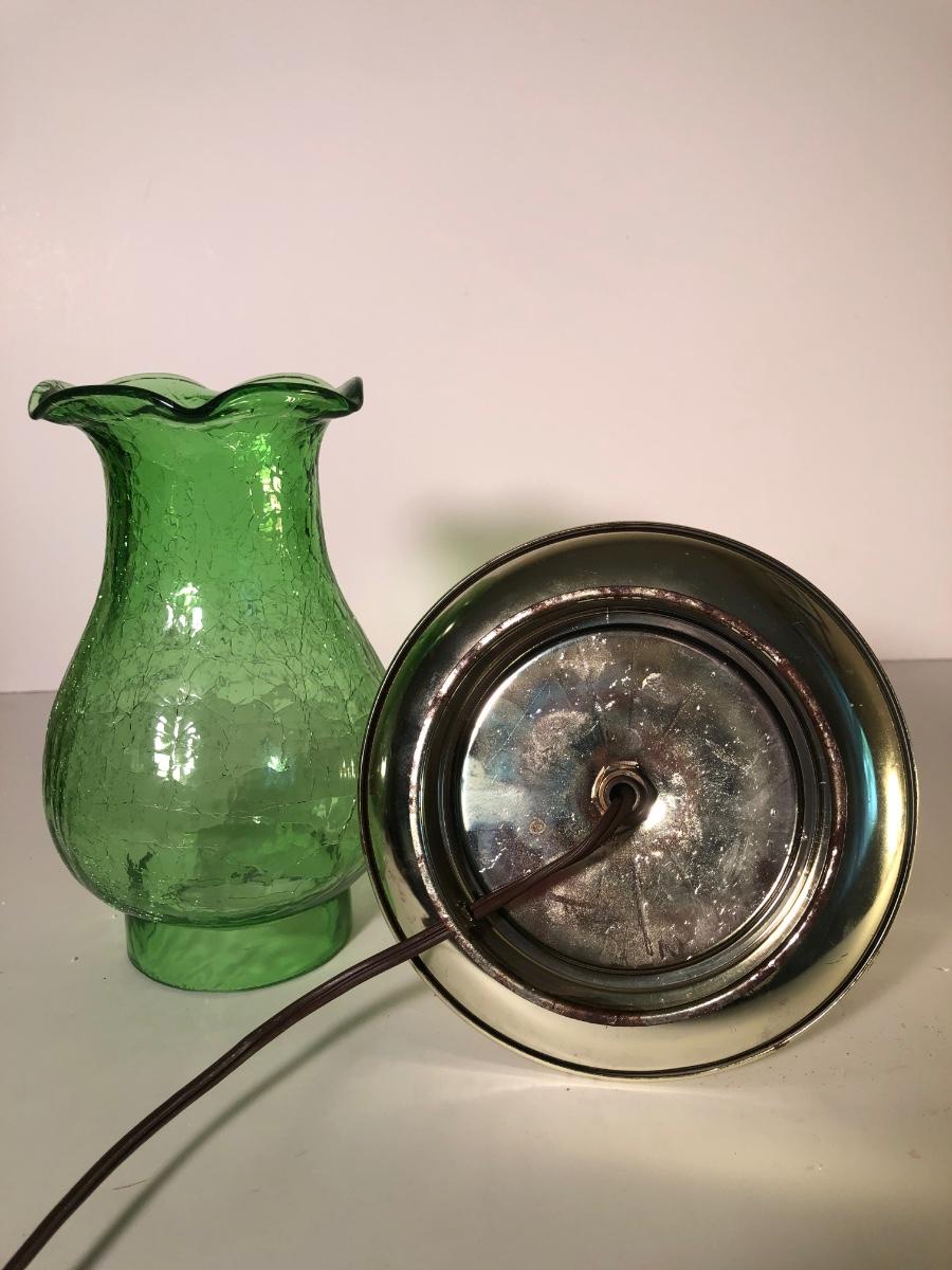 LOT 251G: Vintage Green Crackle Glass Lamp, Crackle Glass Pitchers & Ruby Glass Pitcher